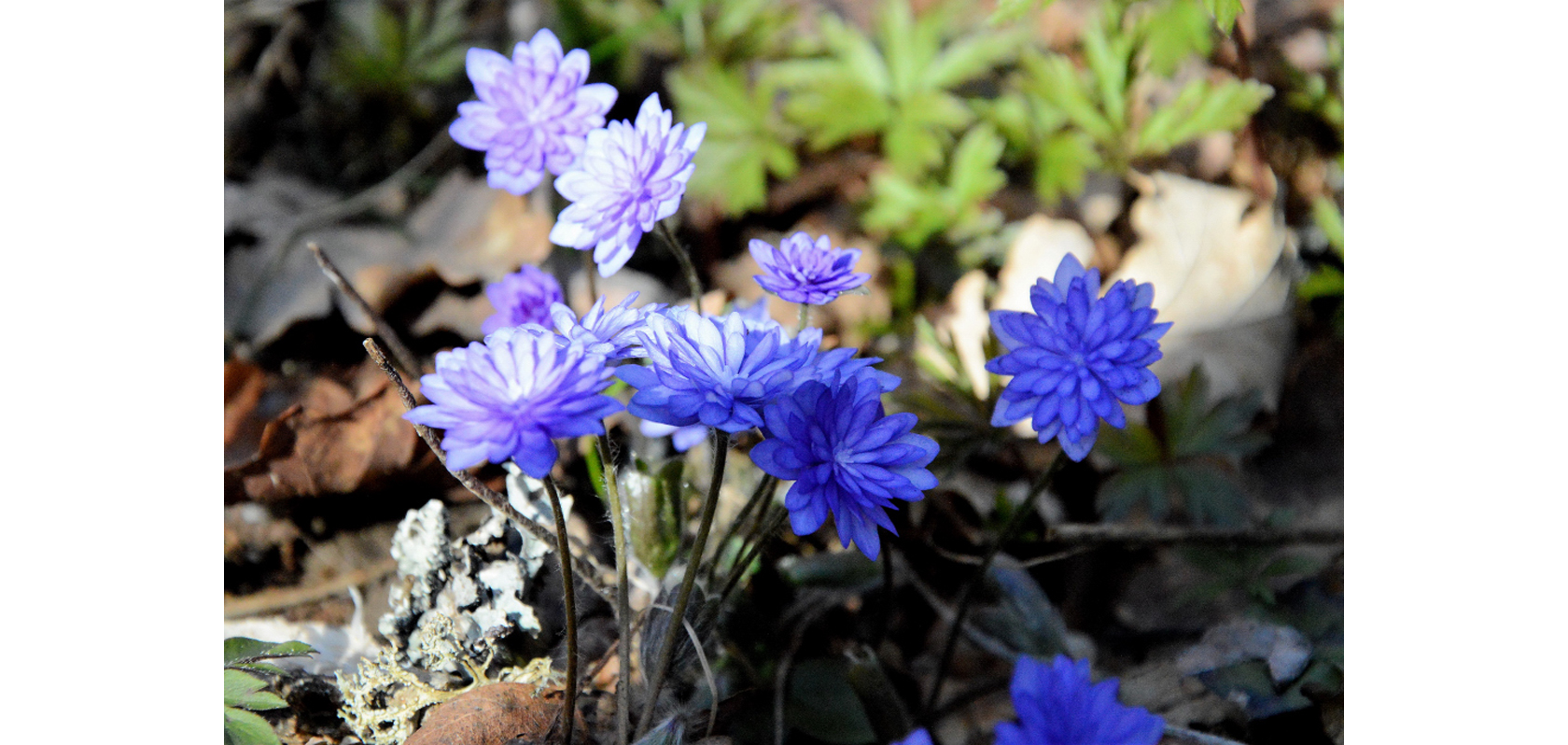 Muterade och numera framodlade blåsippor, ”Anemone hepatica”, med fyllda blommor, mycket vackra och eftersökta, foto Kjell Holmqvist, Huskvarna.