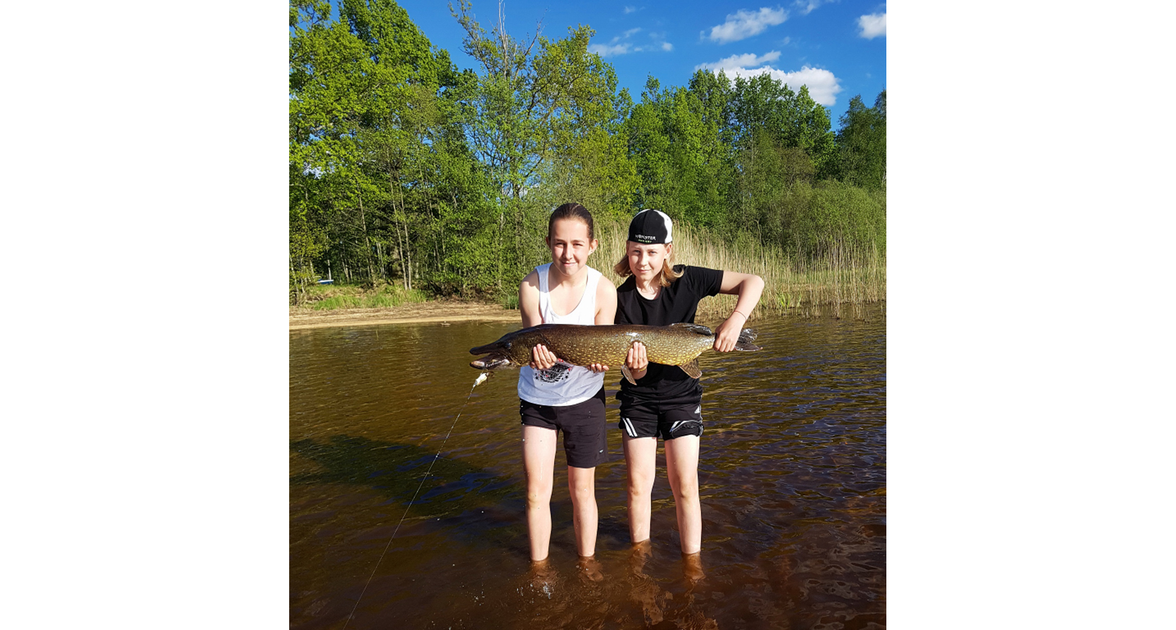 Oskar Lindman och Oscar Nivemark, Värnamo, har fångat storgäddan vid Osudden, sjön Vidöstern, Värnamo, som vägde hela 7 kilo, foto Adin Kobaslic, Värnamo.