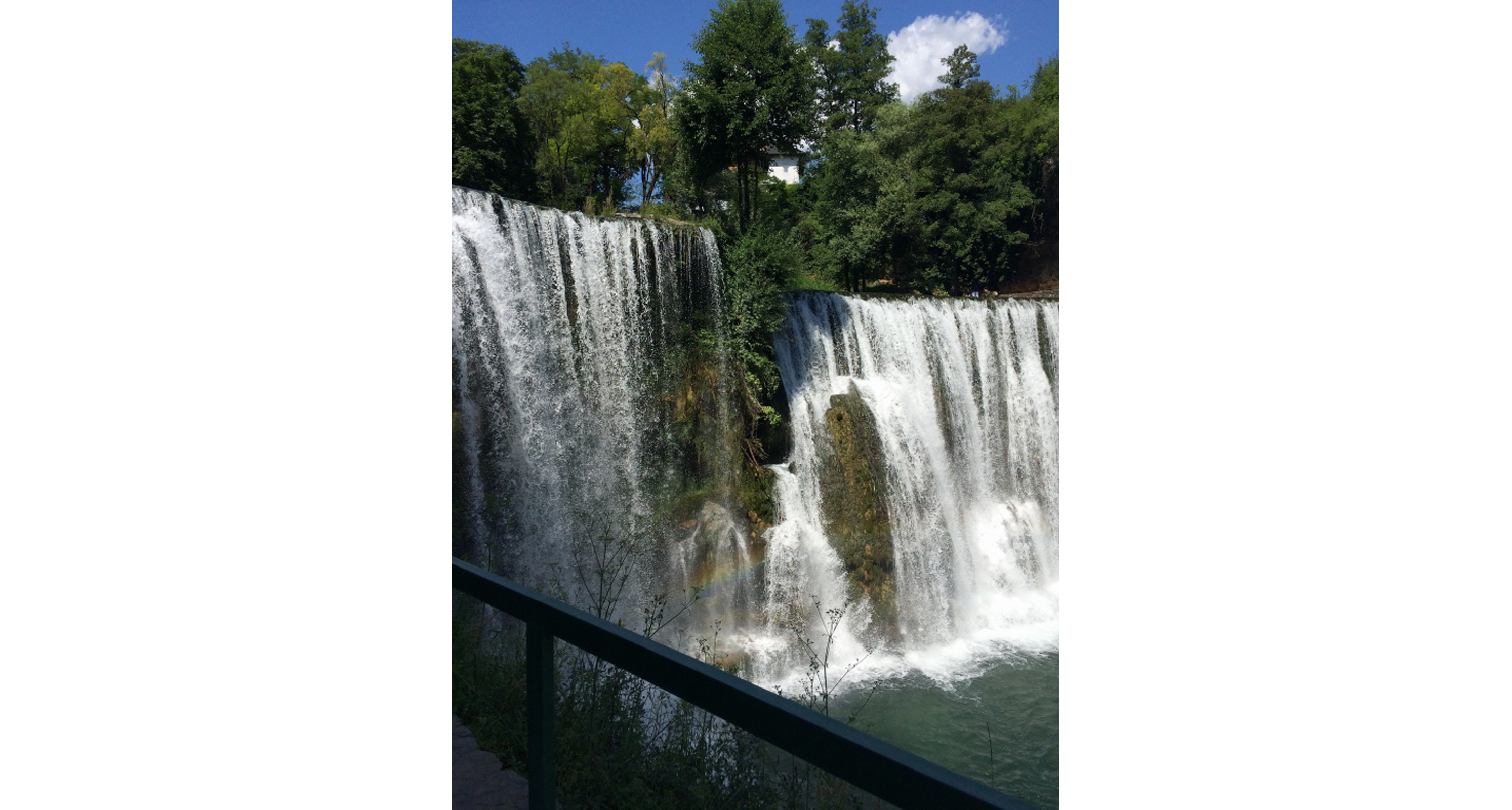 Det mycket vackra och berömda vattenfallet i floden Vrbas mitt i staden Jajce i Bosnien, foto Admira Dedic, Skillingaryd.