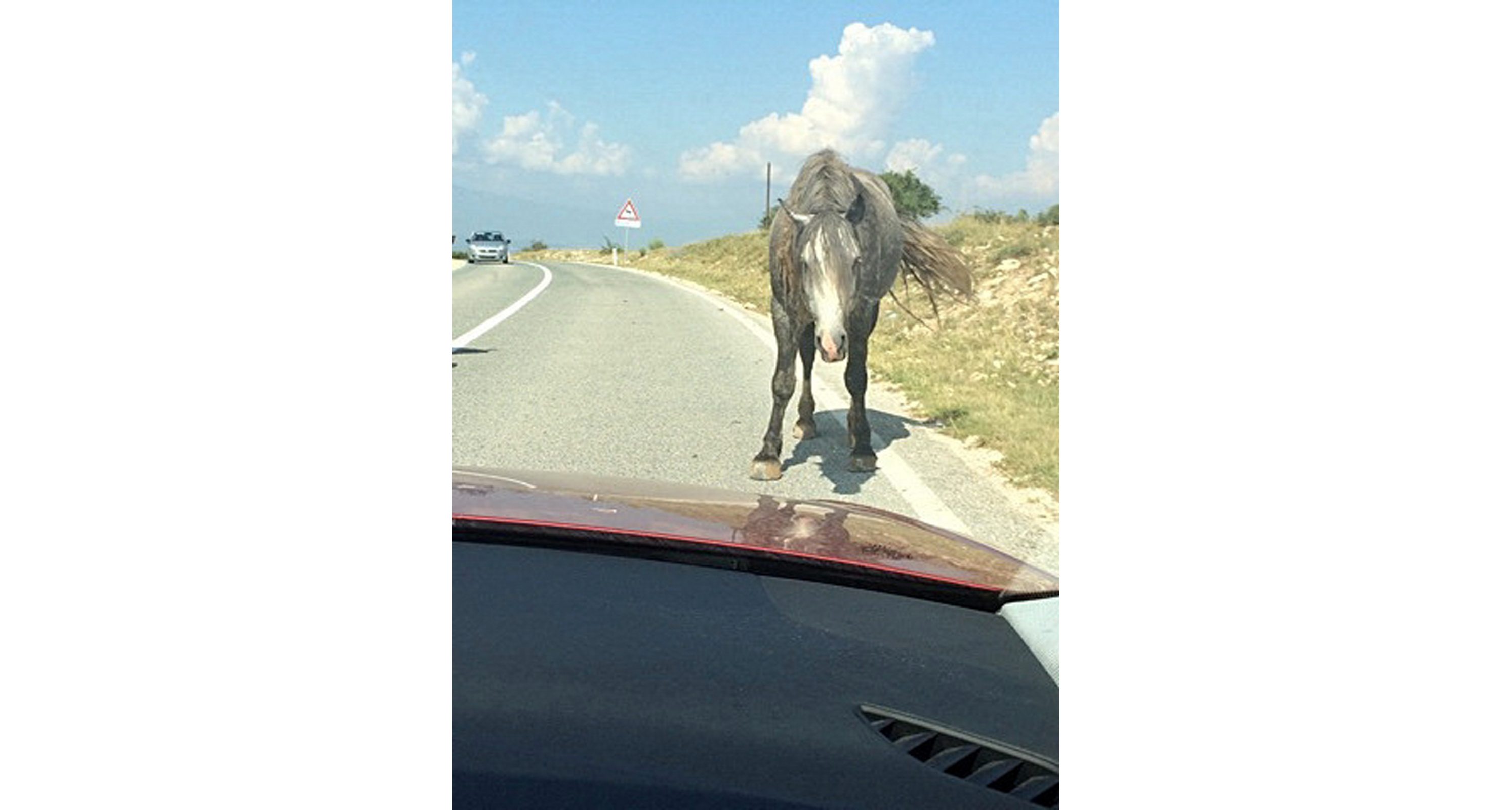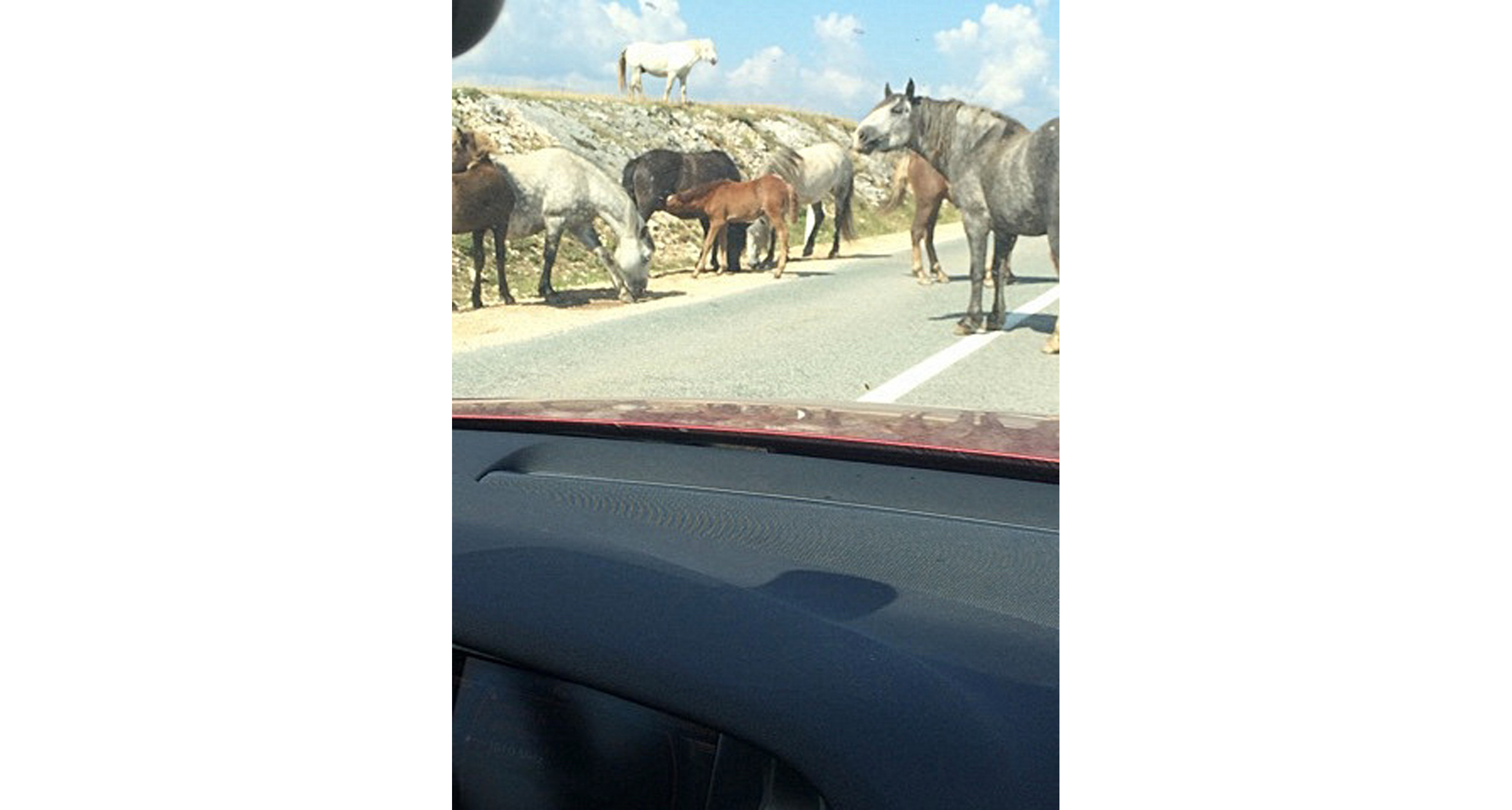 De berömda vildhästarna på vägen nära Livno i Bosnien och Hercegovina.