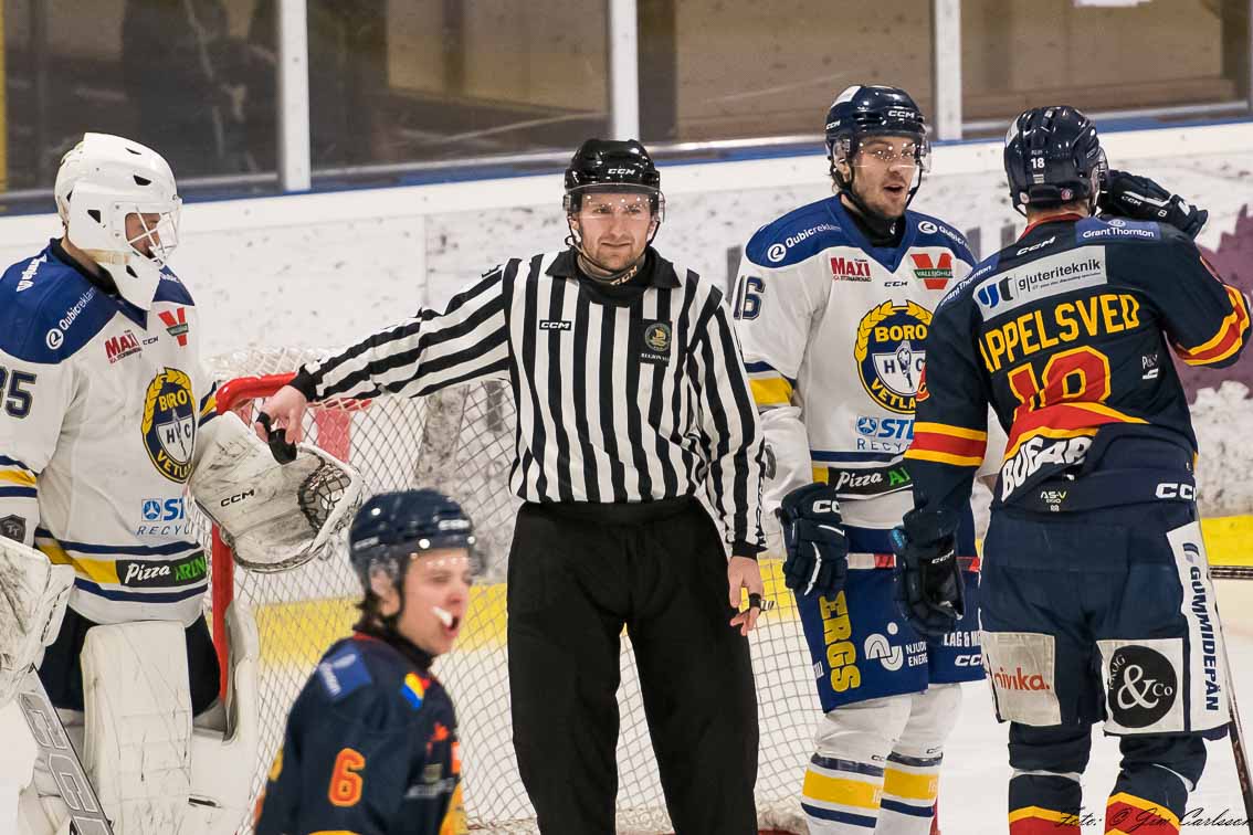 Det var Boro som lyckades göra första målet med tre minuter senare så kvitterade Värnamo genom Linus Edström. I den andra perioden så var det återigen Boro som tog ledningen och de utökade sedan till 3–1 innan tredje perioden.