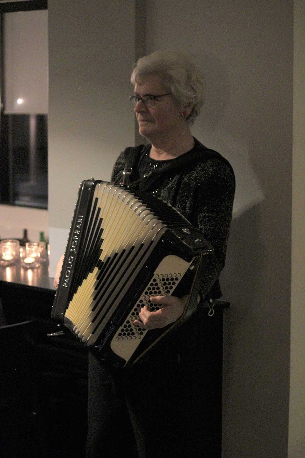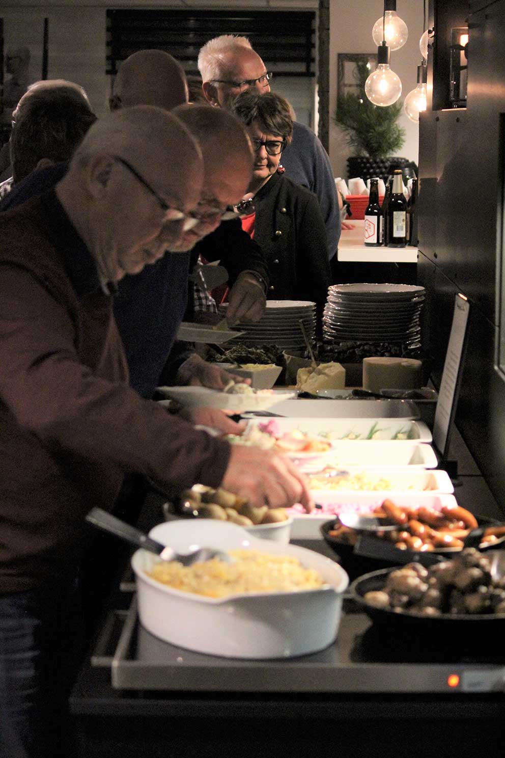 Ingemar Johannesson hälsade oss välkomna till årets julbord och snart hördes glada skratt och samtal när alla samlades. Under tiden som julmaten dukades upp, spelade Ing-Britt Persson julvisor för oss på dragspel så vi kom i julstämning.