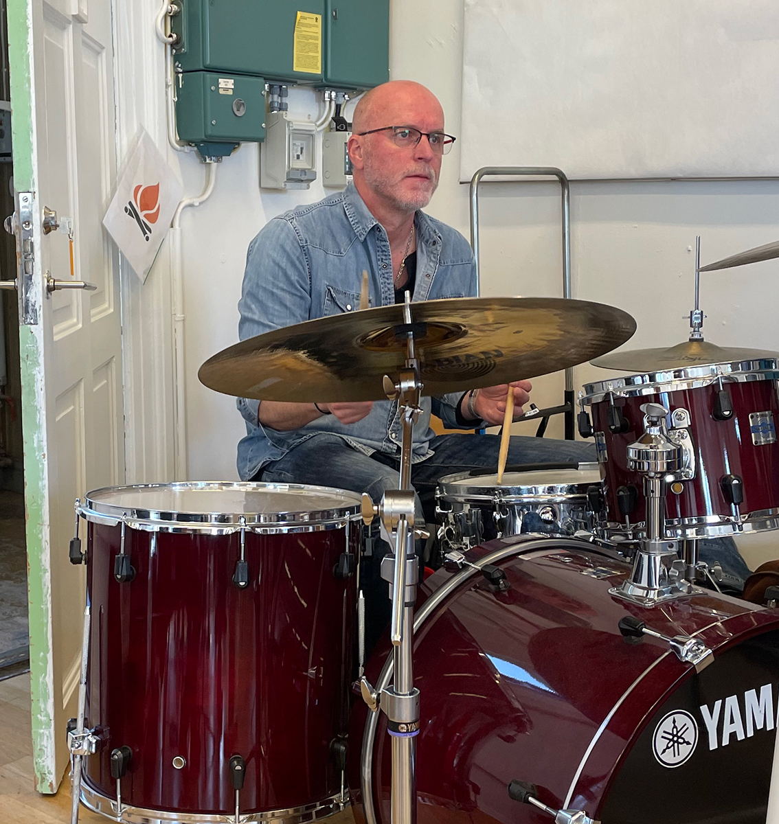 Roger Berg som spelar trummor. Han bor i Malmö men kommer från Vaggeryd. Han flyttade till Malmö redan som sextonåring när han började på musikutbildning där nere. Han har spelat i tivoliorkestern i Köpenhamn och nu har han ett eget storband i Malmö. Han är fullblodsproffs och enligt Mats Ogell är han är en av Sveriges bästa jazztrummisar.