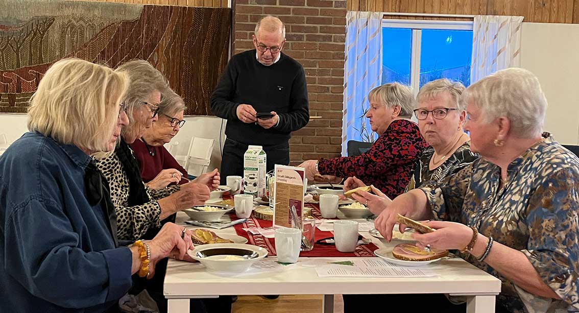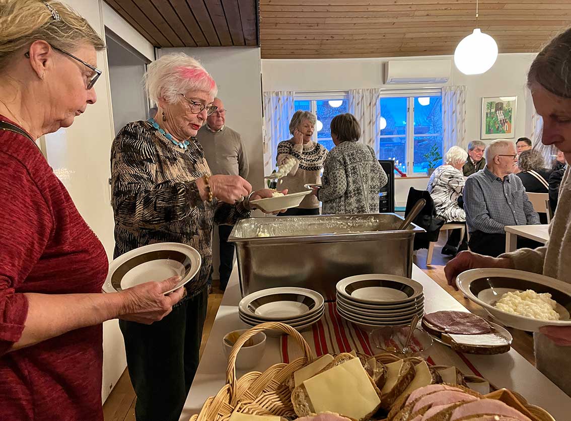 Vice ordförande Thomas Jonsson hälsade kring 80 medlemmar välkomna och därefter intogs gröt och skink- och ostmackor. Sedan blev det underhållning av kyrkans musiker-kommunikatör Anette Svensson med julsånger och allsång.