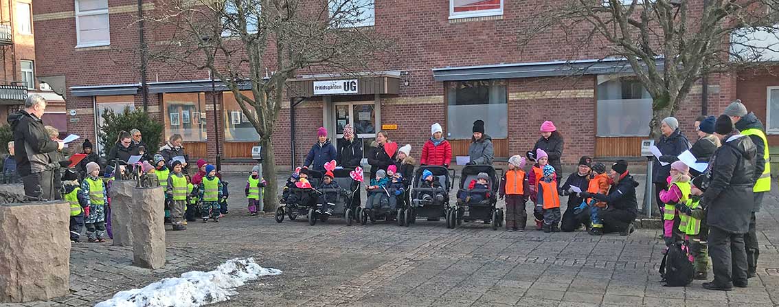 På torget, alldeles nedanför vår redaktion, samlades barn efter barn och förskollärare efter förskollärare för sång och lekar på en dag då man ska tänka på varann lite extra.