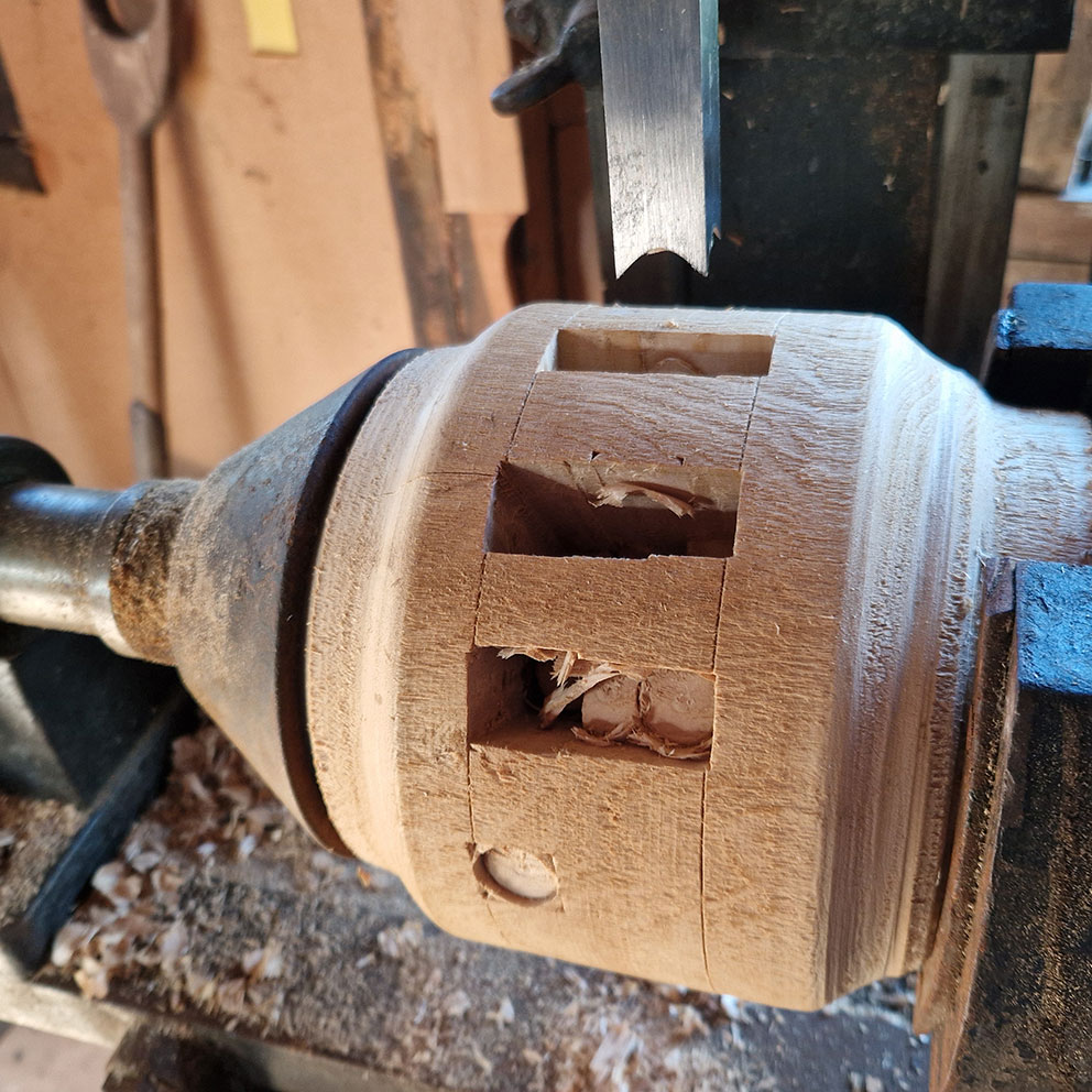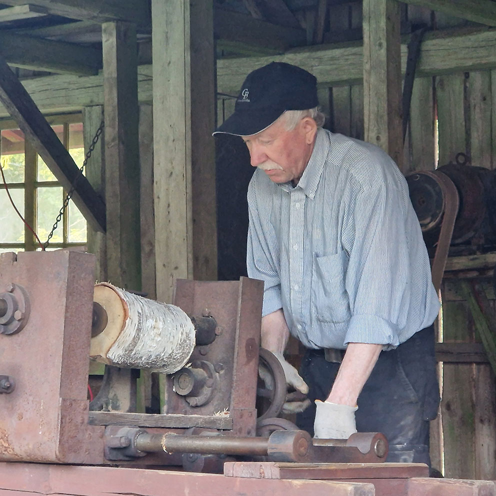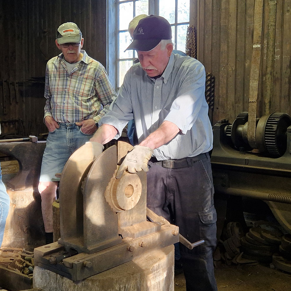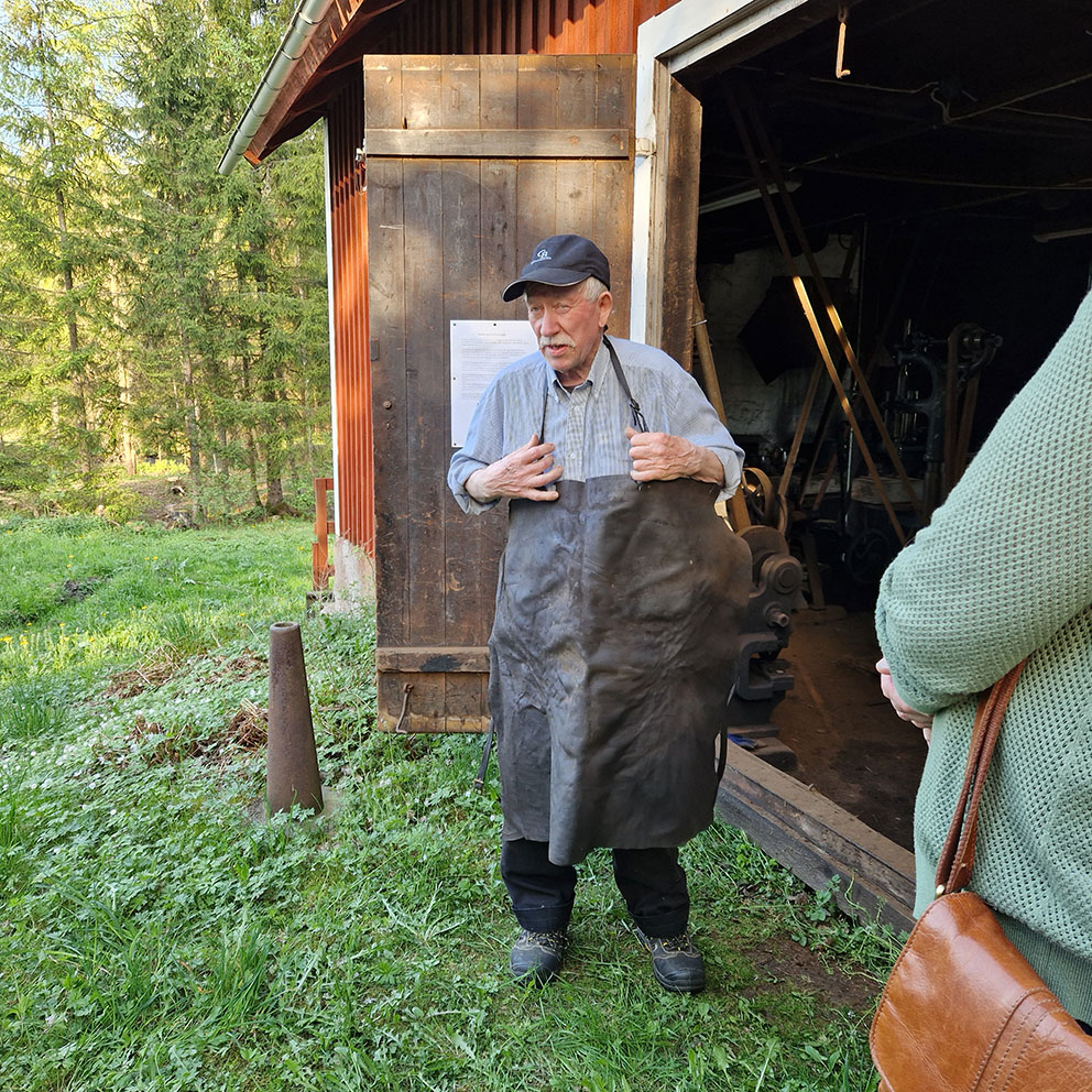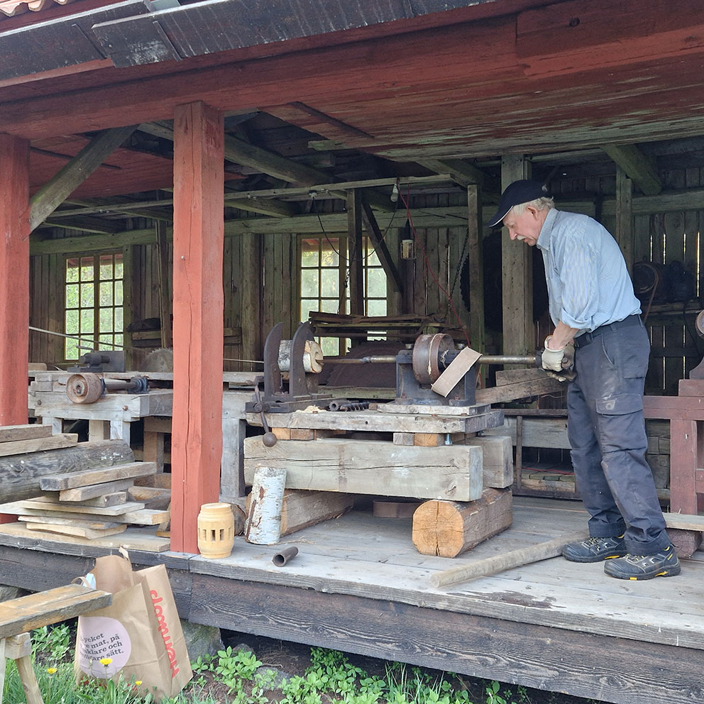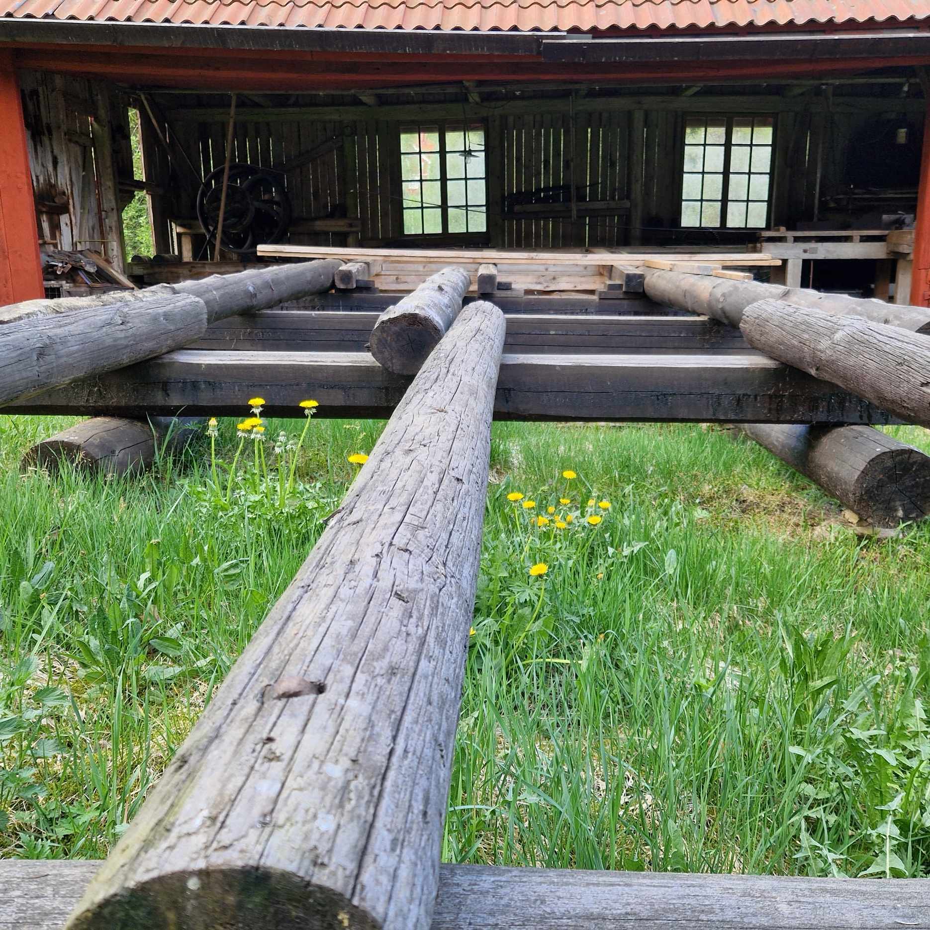 Intill smedjan finns en såg som drevs av vattenkraft där en maskin släppte in vatten i ett löphjul.
