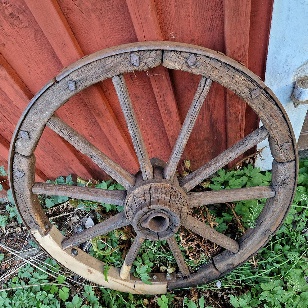 – Det blev en helt ny tid 1917 då hjulverkstaden tog över Högafors kvarn, då rev man allt och byggde nytt. De var tidigare med elström här, 1912. Jag hittade ett riktigt gammalt vagnshjul i skogen för några år sedan. Vi tror att det är från tidigt 1800-tal då man ser ”stumpaskenor” är ditsatta runt vagnshjulet istället för hel skena. Förr smörjde man skenorna med sniglar.