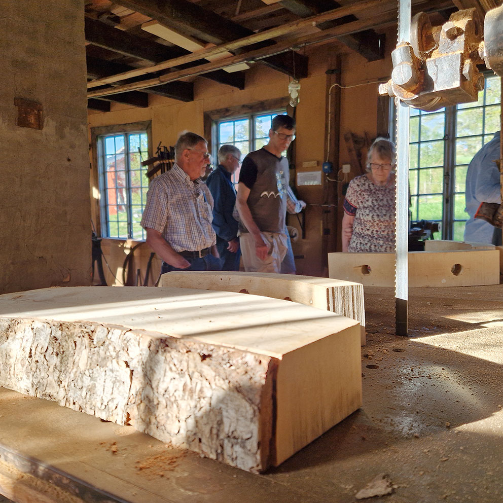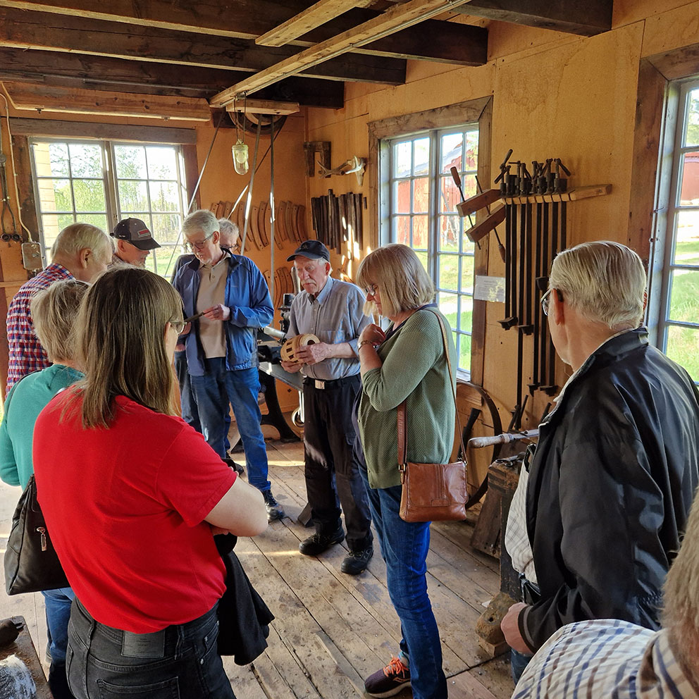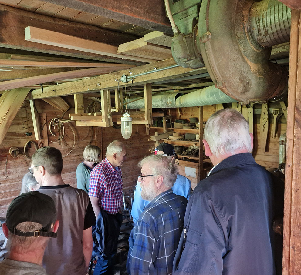 En intressant rundvandring gjordes i snickeriverkstaden innan LRF-medlemmarna tog sig till Högafors kvarn, strax uppströms Horsån. Håkan berättar att här började man också jobba med åkdon och då mindre kärror.
