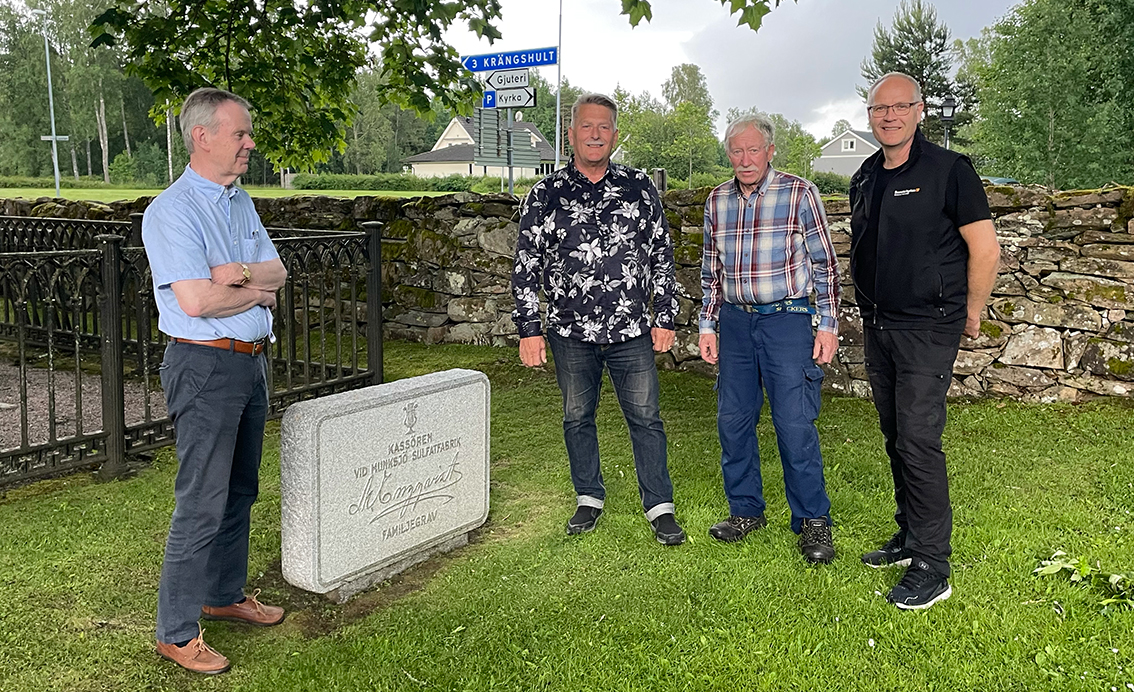 Sällskapet började vid Kvarnabergs hjulverkstad där verksamheten startarde 1880. Håkan berättar: – Hjulverkstaden är en av tre byggnadsminne i kommunen. Ett byggnadsminne utfärdas av Länsstyrelsen och får inte rivas. Här gjordes vagnshjul. De är gjorda av två trädslag, björk och antingen ask eller ek. Maskinerna inne i verkstaden är från 1800-talet och senast det var verksamhet här var 1965. Intill här rinner Horsån som börjar i Braskabo, rinner ut i fyra sjöar och ett antal gölar på vägen ner till Munksjö. Horsån ansluter sig därefter till Lagan.