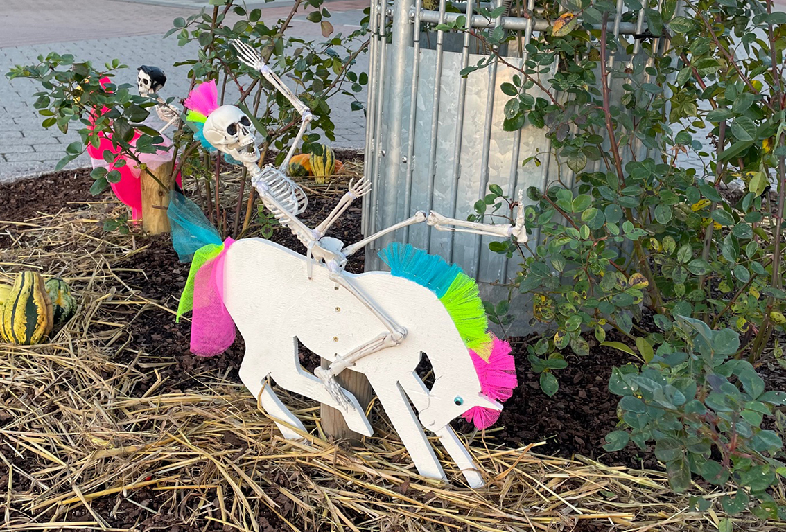 För mig har ni gått över gränsen, jag är inte emot pynt i rondell. Ett skelett för mig betyder död eller likaså döskalle med ett par benknotor något som är extremt giftigt. Beklagligt med tanke på covid och människor som blivit drabbade. Jag med familj bojkottar centrum i Vaggeryd och handlar på annan ort så länge detta så kallade pynt är där. Jag uppmuntrar även andra att göra det samma. Mjo