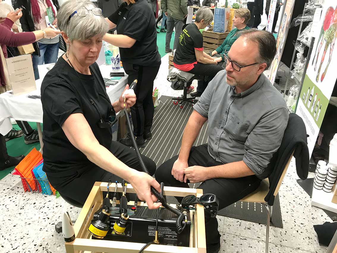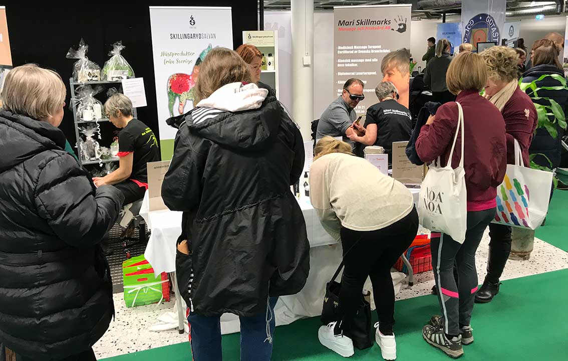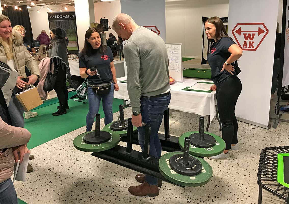De flesta av alla utställare på plats hade friskvård i en eller annan form att erbjuda. Man kunde testa att lyfta en liten stock, spela golf, bli masserad och mycket mer.