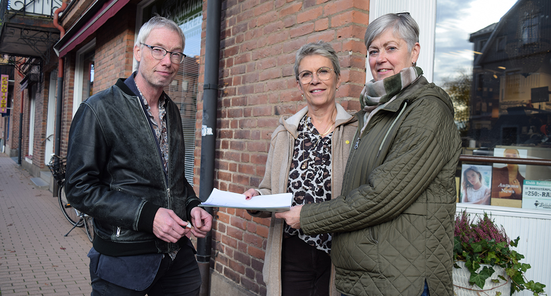 ”Skillingaryd har allt att förlora – men mycket att vinna”. Ett 20-tal näringsidkare skrev under och i dag lämnades namninsamlingen över till kommunstyrelsens ordförande Kenth Williamsson (S).