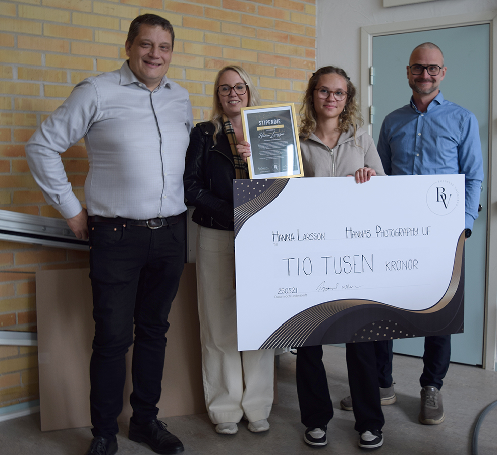En check på 10 000 kronor och ett diplom överlämnades till en minst sagt förvånad och rörd Hanna Larsson som har drivit fotograferingsfirma. – Tack till Jessica och Mats som hjälpt mig. Det har varit jätteroligt, säger Hanna.