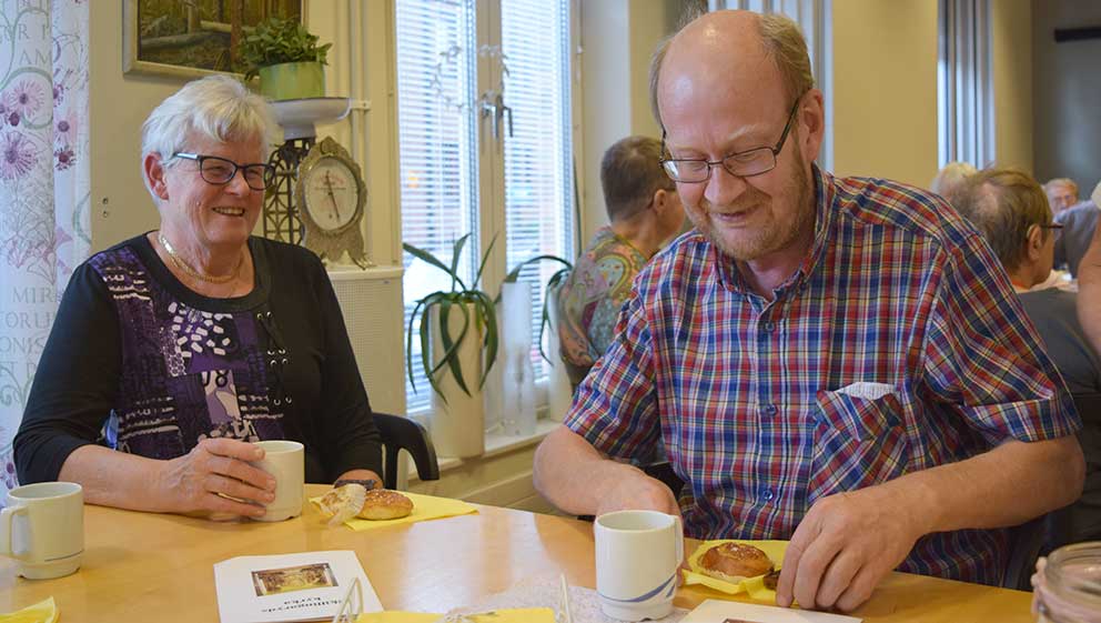 Varje tisdagsförmiddag är det fullsatt vid kaffeborden på Café Gemenskap i Pingstkyrkan i Klevshult.