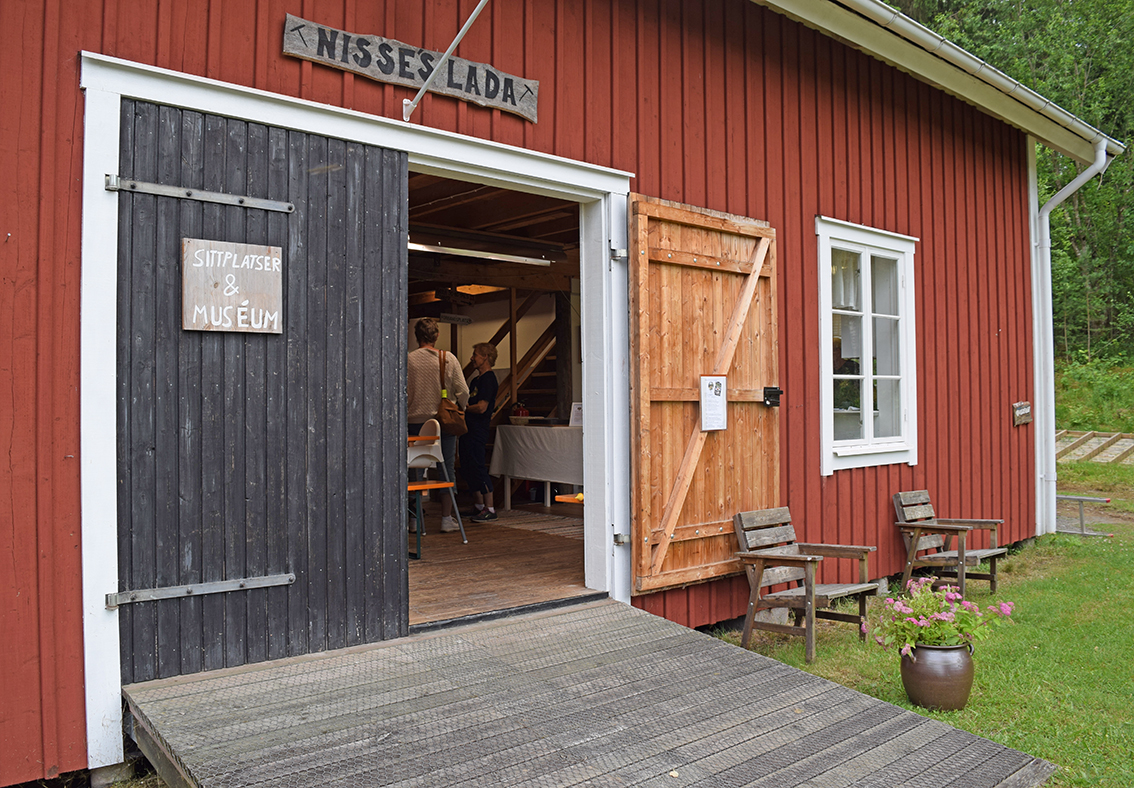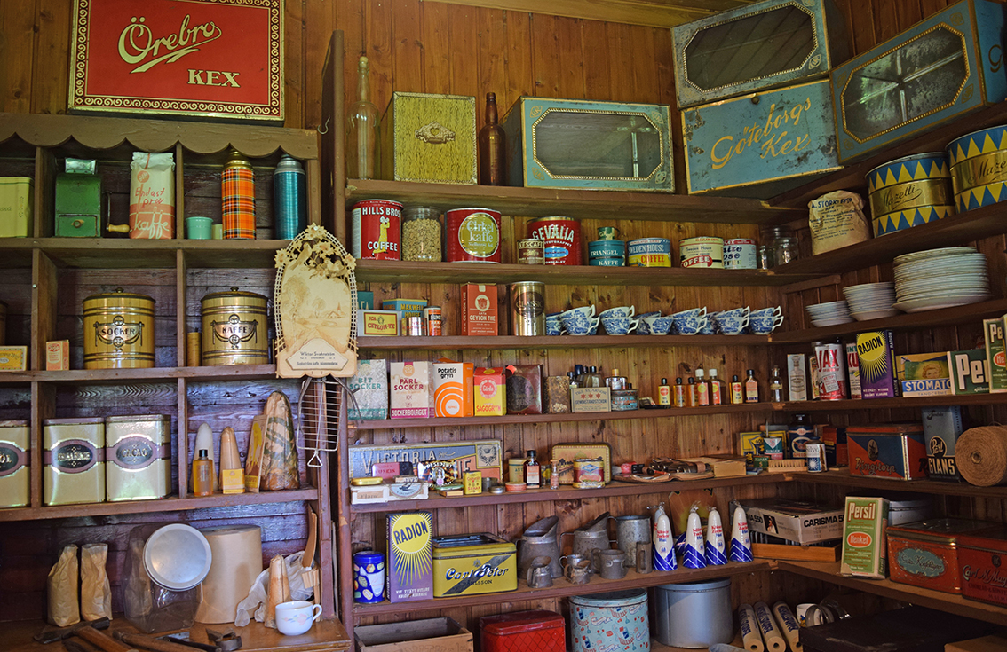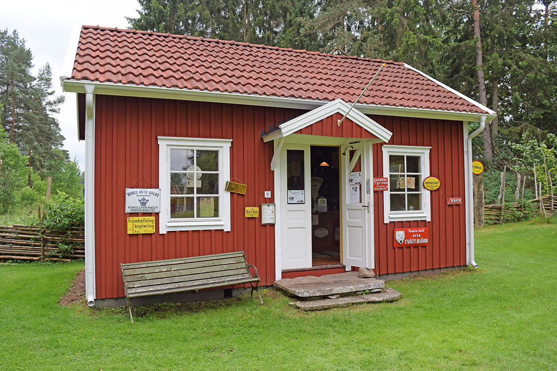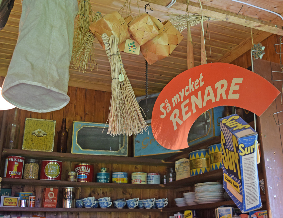 Alla bodar var öppna i hembygdsgården och vi tog oss en rundtur i den lilla antika handelsboden. Så fort man stiger in färdas man många, många år tillbaka… Handelsboden är inredd med inventarier från Svahnströms Lanthandel i Svenarums kyrkby. Svahnströms Lanthandel startade 1870 och lades ned för 50 år sedan. I början av 1900-talet var lanthandeln även skjutsstation.