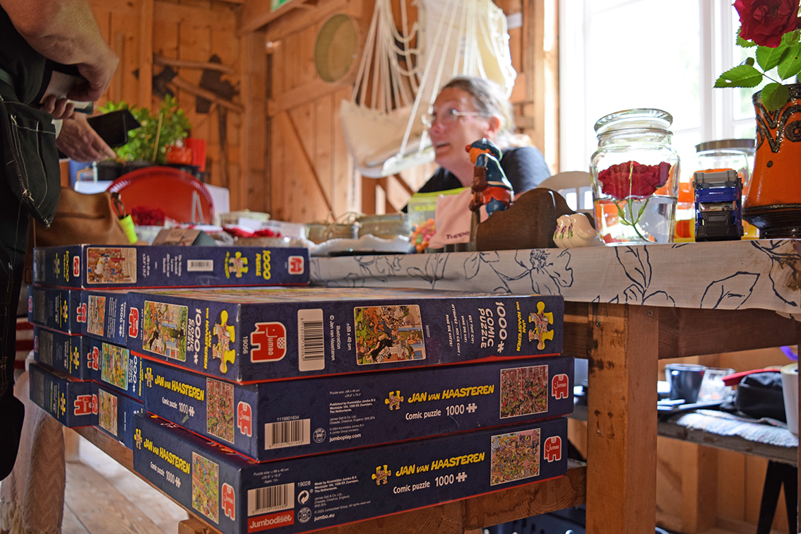 Inne i kaféet var det både loppis, marknad och fika. Anita Jonsson från Kvighult sålde bland annat ”kommunalrådspussel” som vi på redaktionen blev nya ägare till.