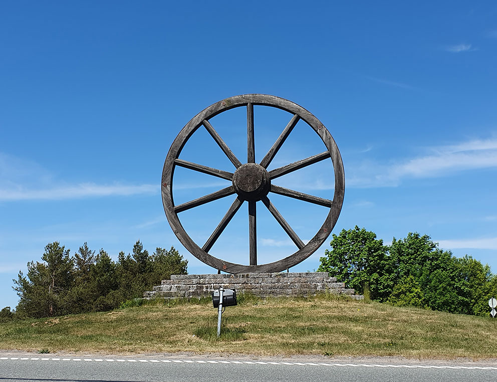 ”När E4:an var färdigbyggd förbi Skillingaryd smyckades avfarten vid Götaström med ett vagnshjul i storformat. Det placerades högt och väl synligt och har genom åren tjänat som ett vackert och uppmärksammat landmärke för trafikanter på E4:an.
