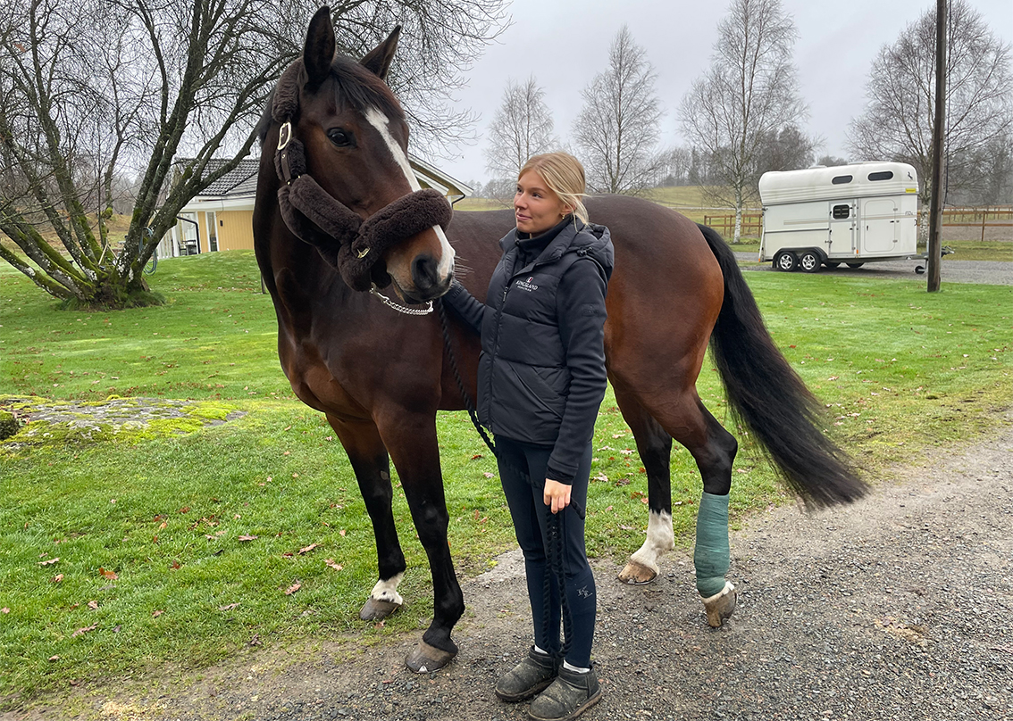 – Nu får hon gå hemma, stå på boxen, kanske gå lite i hagen, promenera och äta smärtlindring. Benet måste också kylas varje dag för vi måste få ner svullnaden, säger Maja.