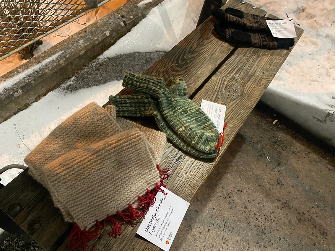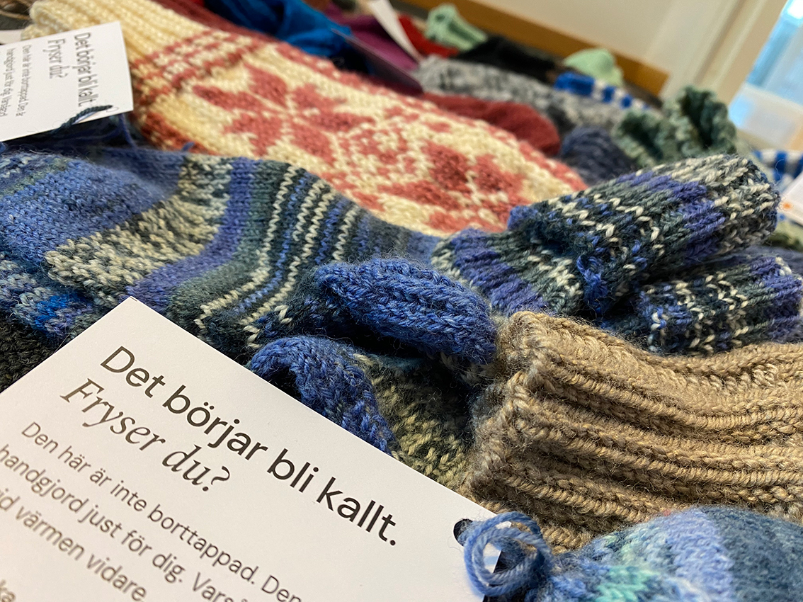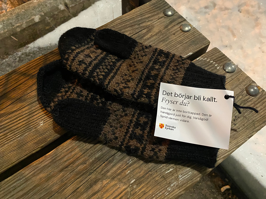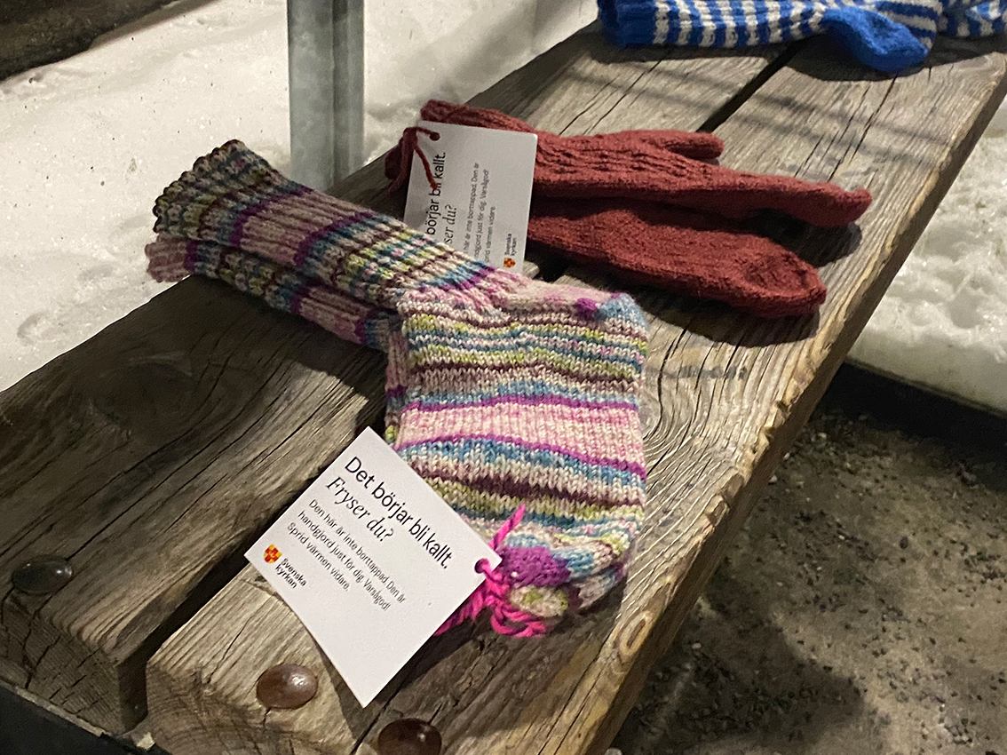 I Jönköpings, Kalmar och Kronobergs län har engagerade församlingsbor under flera månader stickat och virkat i hemlighet. Resultatet är hundratals handgjorda halsdukar, mössor och vantar – alla utplacerade under småtimmarna för att överraska den som behöver värme, omtanke eller bara en påminnelse om att ingen ska stå ensam. I Skillingaryd har cirka 25 plagg lagts ut, stickade av frivilliga händer.