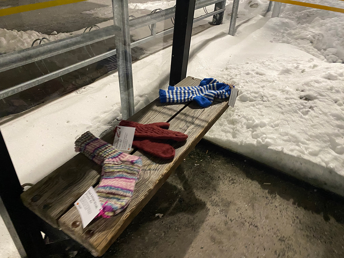 Under natten har värmande gåvor dykt upp på bänkar, vid busshållplatser och på andra offentliga platser runt om i Sverige, så även i Skillingaryd.