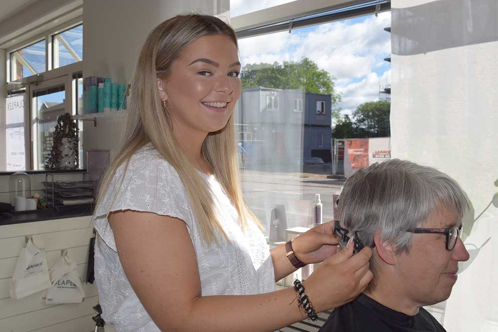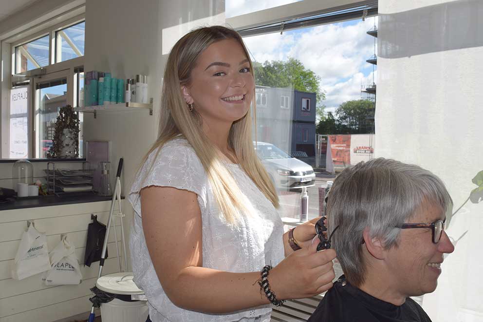 Snart 19-åriga Hilda Ljungberg från Svenarum jobbar som frisörlärling på Studio 93 i Skillingaryd