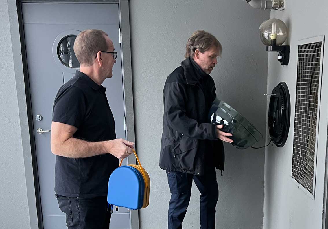 Jan Aronsson och Mats Carlsson där hjärtstartaren är redo att invigas