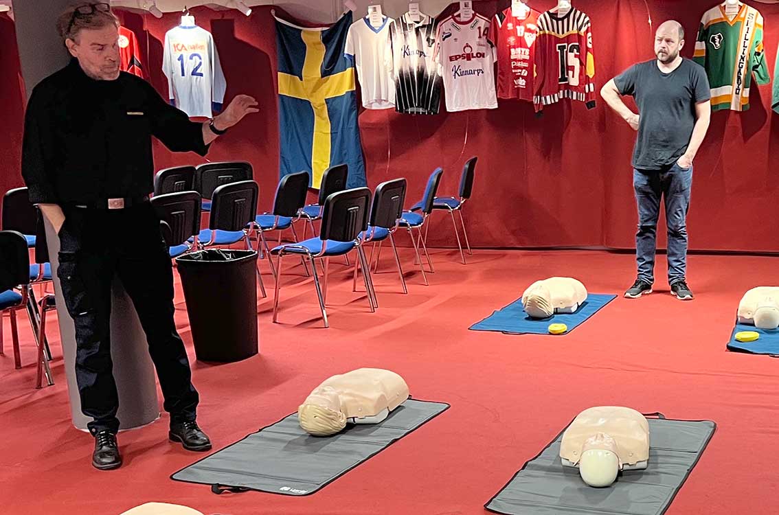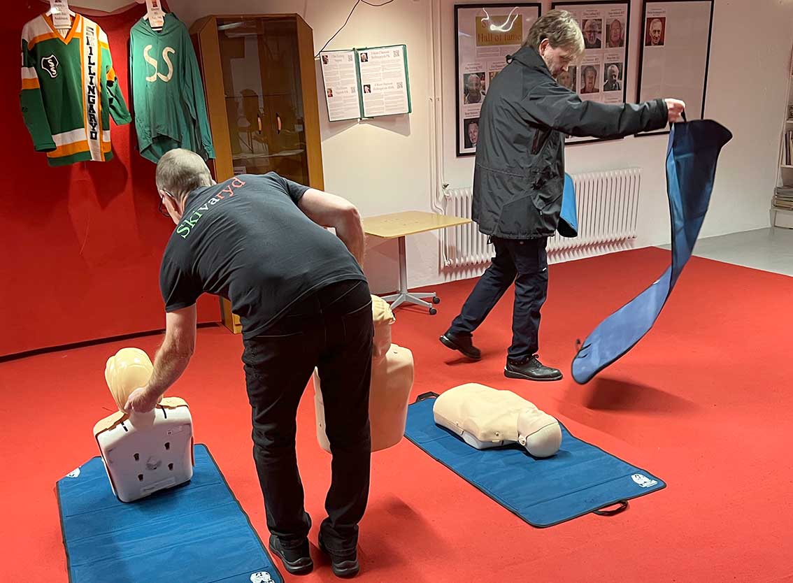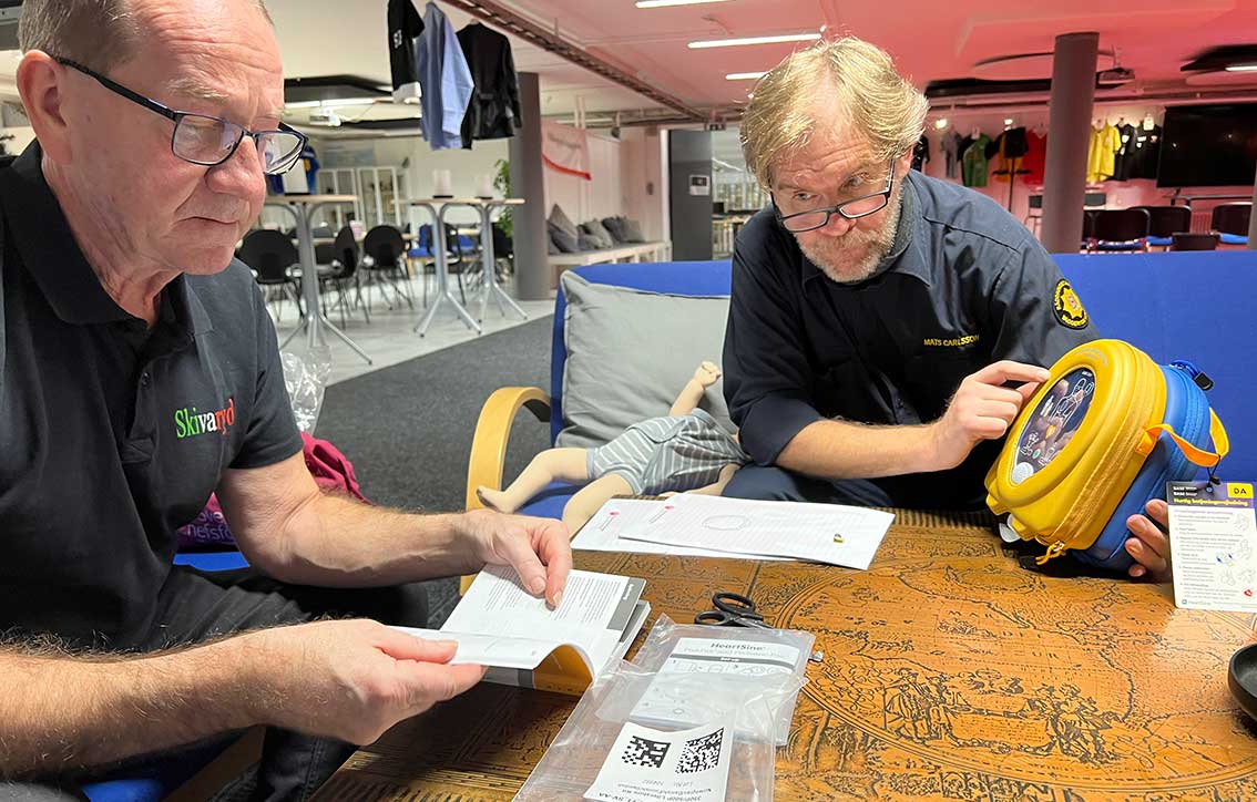 Jan Aronsson och Mats Carlsson gick igenom praktiska detaljer kring hjärtstartaren