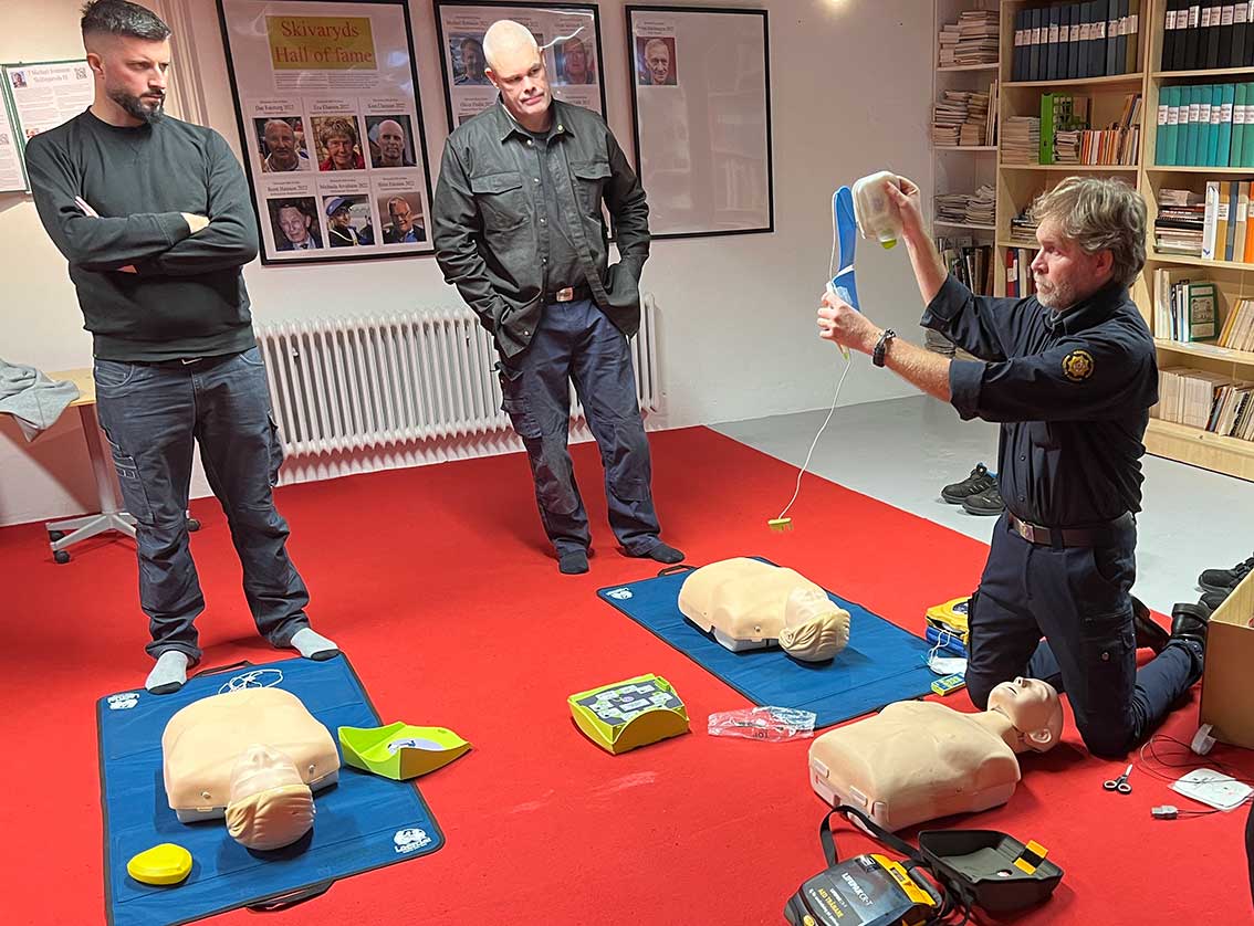 Mats Carlsson från räddningstjänsten medverkade vid invigningen av hjärtstartaren och han höll under förmiddagen en utbildning om denna samt i hjärt- och lungräddning för ett 15-tal personer som samlats i Skivaryd. Efter nyåret blir det ytterligare ett par kurser. Mats Carlsson var belåten med satsningen på en hjärtstartare och det stora engagemanget från bland andra Skivaryd och Skillingaryds Mekaniska.