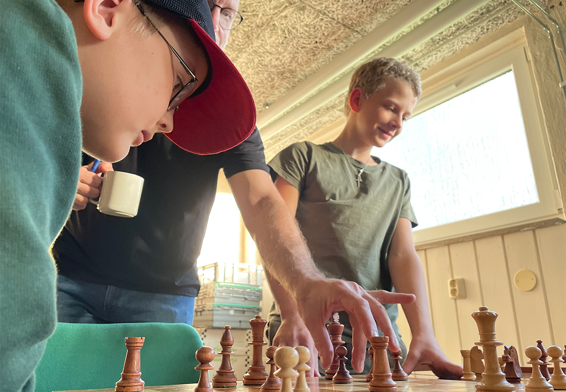 Kaffebryggaren puttrar i köket i källarlokalen där Vaggeryds schackklubb håller till. Det ligger en förväntansfull spänning i luften. Snart startar veckans ungdomsträning och ledarna Johan Krohn och Emil Lilja lägger upp olika ”pussel” på klubbens schackbräden.