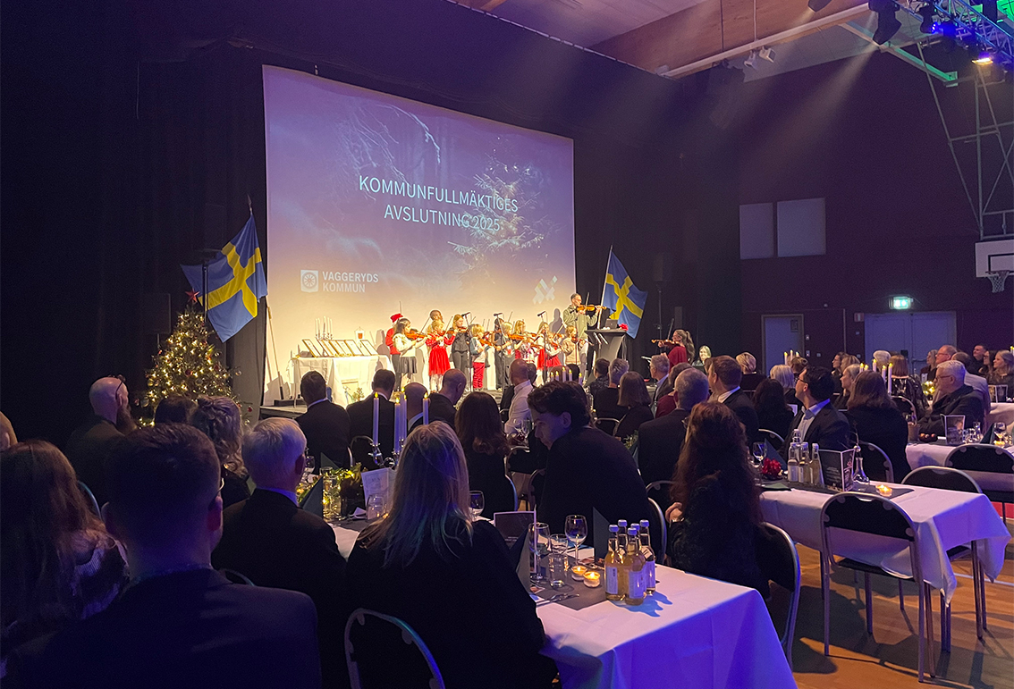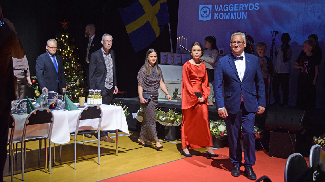 Först upp på scen var Martina och Axel Willman, Gärahovs Gård, som mottog kommunens miljö- och hållbarhetspris. Motivering: "Martina och Axel Willman på Gärahovs gård har under 2025 välkomnat elever från årskurs 6 på Hjortsjöskolan till sin gård genom projektet Skolan på gården. Martina och Axel har genom sitt engagemang och sin kunskap gett alla elever möjlighet att få fördjupade kunskaper om livet på gården och matens ursprung. Initiativet har bidragit till att öka elevernas kunskap och respekt för vart maten kommer från. Detta initiativ bidrar till att uppnå miljökvalitetsmålen – Ett rikt odlingslandskap"