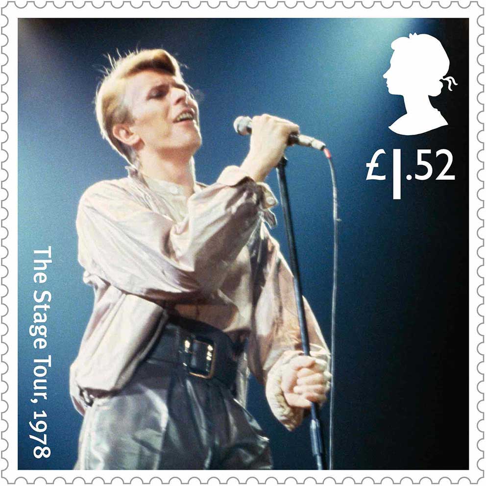 Det brittiska postverket hyllar den 14 mars musikonen David Bowie med tio frimärken.