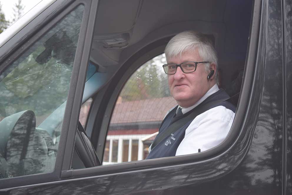 – Jag köra linjebuss mellan Jönköping och Värnamo. Idag är det fler som väljer att åka buss. Tyvärr fungerar tågen lite dåligt ibland och då blir vi drabbade och får inte plats med våra ordinarie resenärer. Roligt arbete, men lär känna många pendlare. På en linjebuss finns en GPS installerad med en dataskärm. Visar den rött får jag inte lämna hållplatsen, då kör jag före tidtabellen, menar Olle.