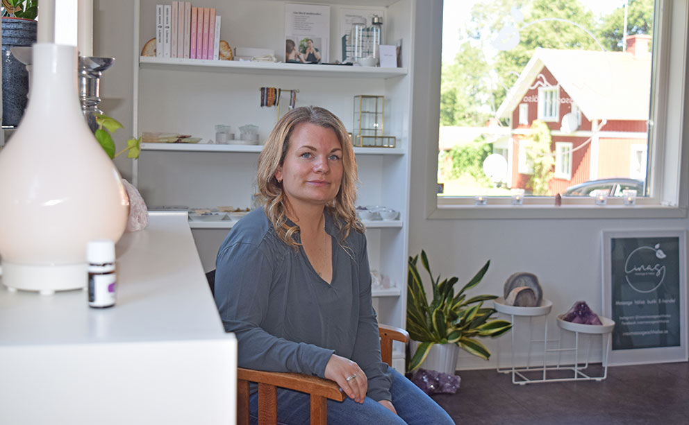 – Jag gick färdigt utbildningen 2018, skaffade mig en mobil bänk som har fått följa med ut till olika ställen, sedan dess. Jag jobbar egentligen inom hemtjänsten men för tillfället är jag mammaledig. Min mamma påtalade att hon sett att det fanns lokal ledig här i Konsums gamla lokaler men jag kollade aldrig upp det just då. Men då jag inte har möjlighet att ha någon verksamhet hemma ringde jag senare upp Christer Karlsson och frågade och det fanns plats för mig. Och det gjorde det, berättar Ina Carlberg och ler.