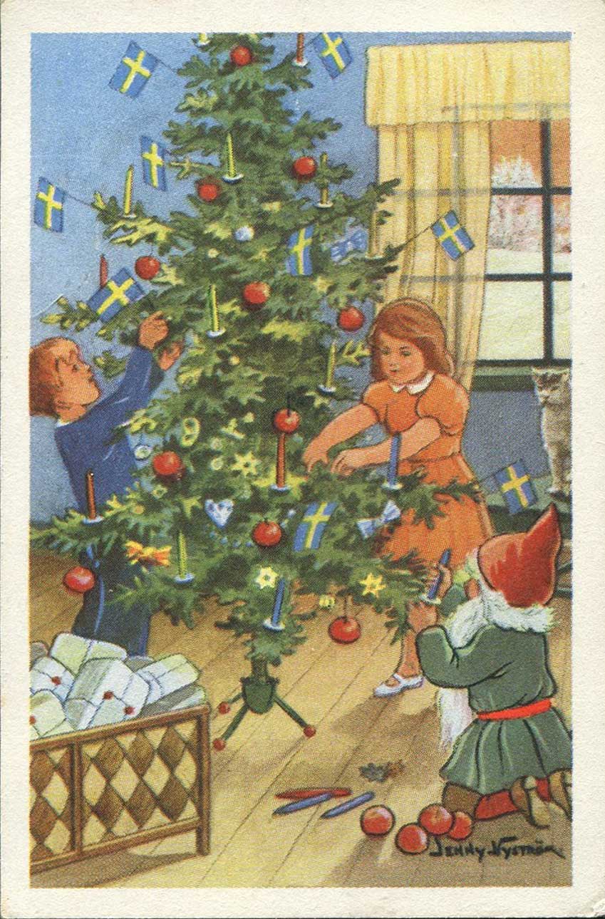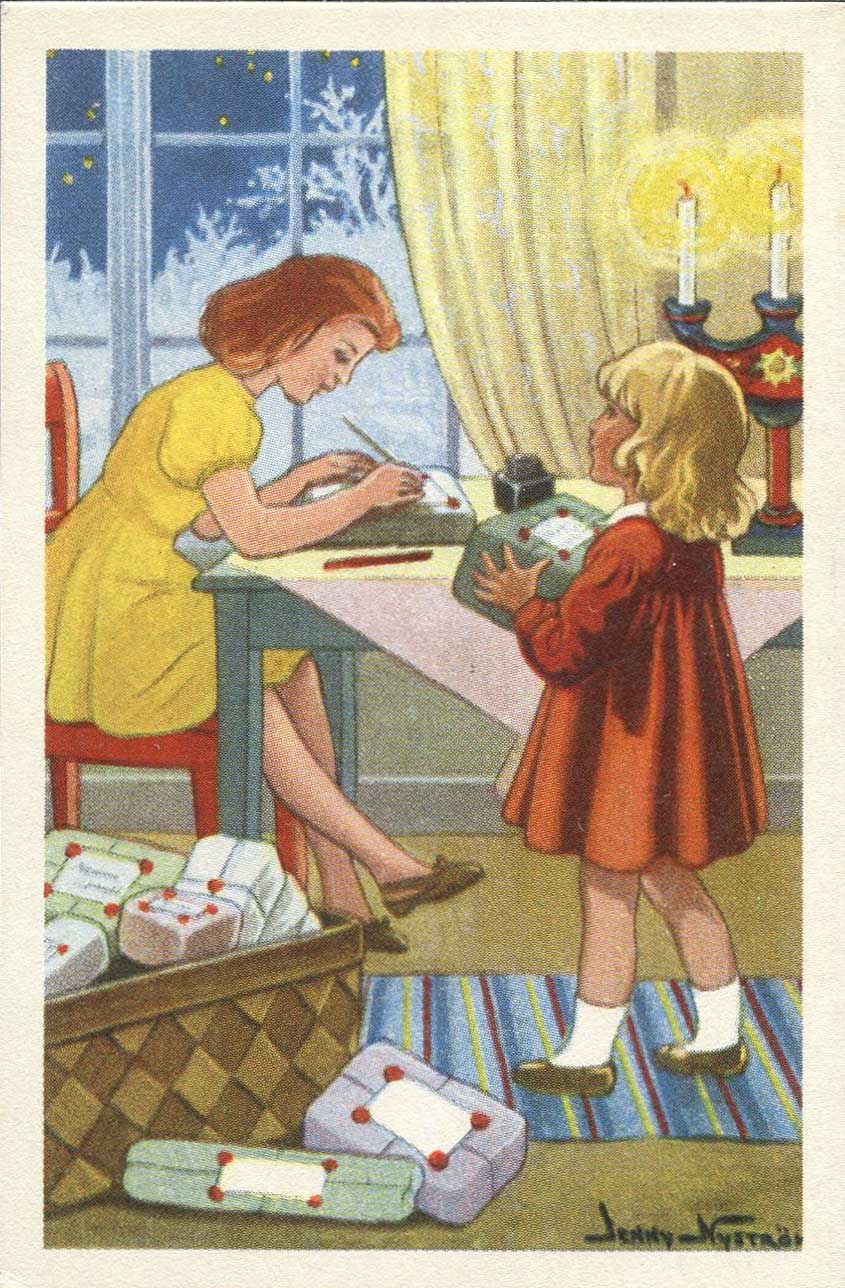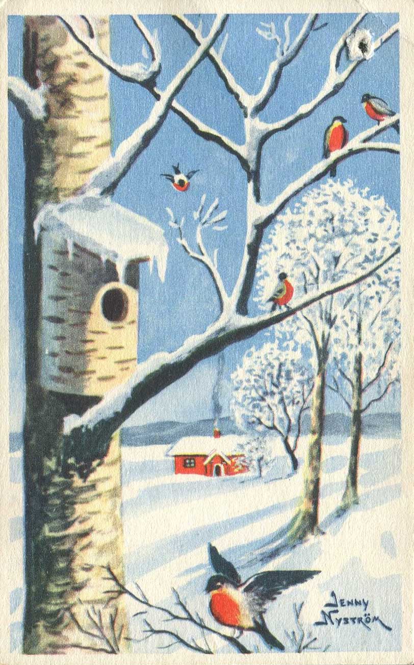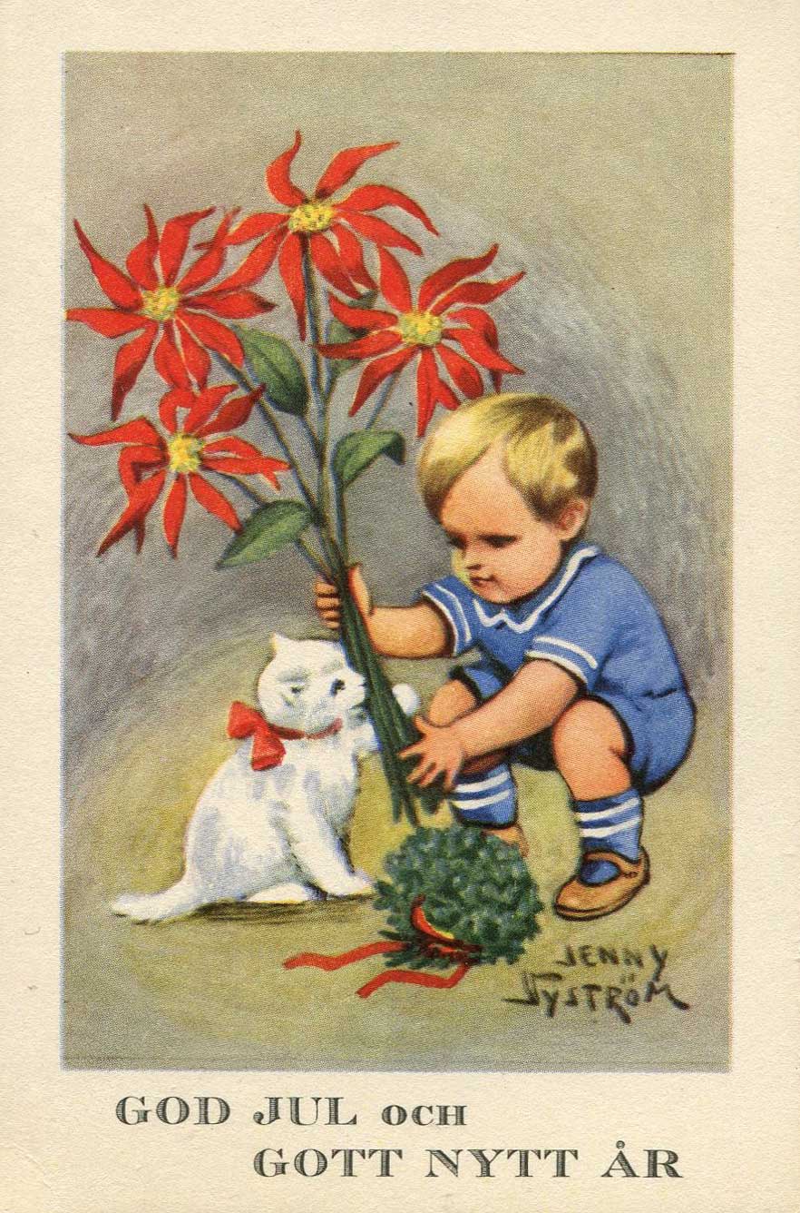 Även om julkortsskrivandet inte är som förr så dimper det ned ett och annat julkort med motiv av bland andra Jenny Nyström. Just Jenny Nyström är vår mest folkkära julkortskonstnär.