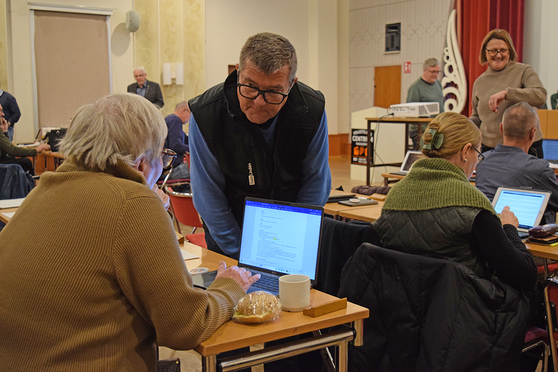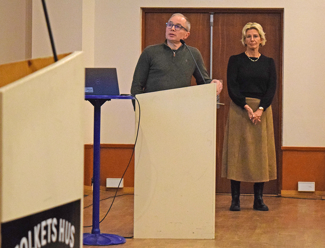 Annika Hedvall, kommundirektör och Jerry Besåsen, kommunens fastighetschef föredrog ärendet för kommunfullmäktiges ledamöter under måndagskvällen. Annika drar en kort bakgrund: – För att kunna uppfylla kraven på en god arbetsmiljö fri från frisker för ohälsa i enligthet med arbetsmiljölagen samt att arbetsgivaren ska göra allt som behövds för att förebygga att medarbetaren utsätts för ohälsa, beslutade kommunstyrelsen i juni att utrymma. Vi sitter i ersättningslokaler, Skänkelund, Petersborg, Fenix och här i Folkets hus i Vaggeryd, The Park på södra Stigamo, på Tallbacken och Mejeriet i Skillingaryd.
