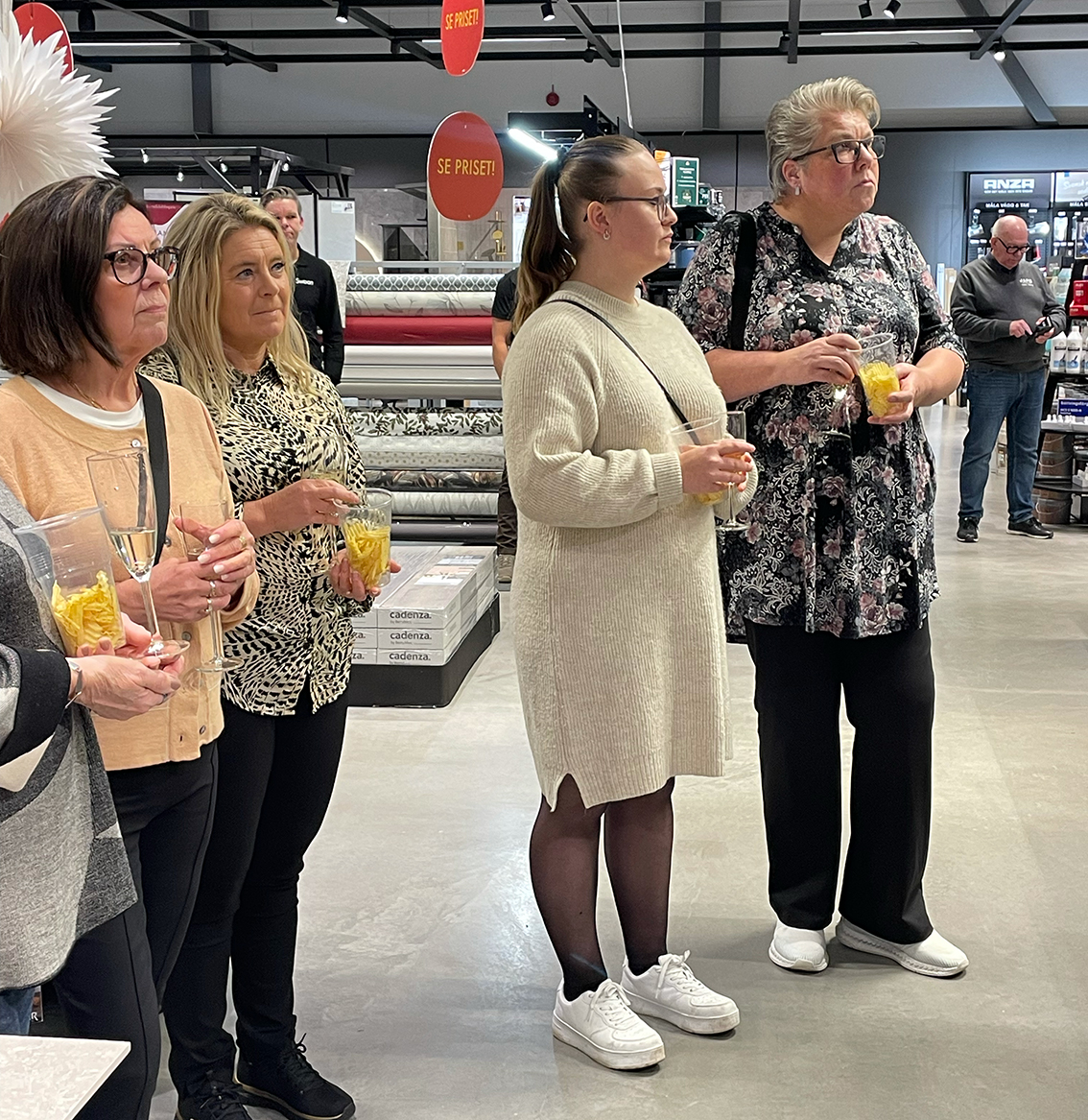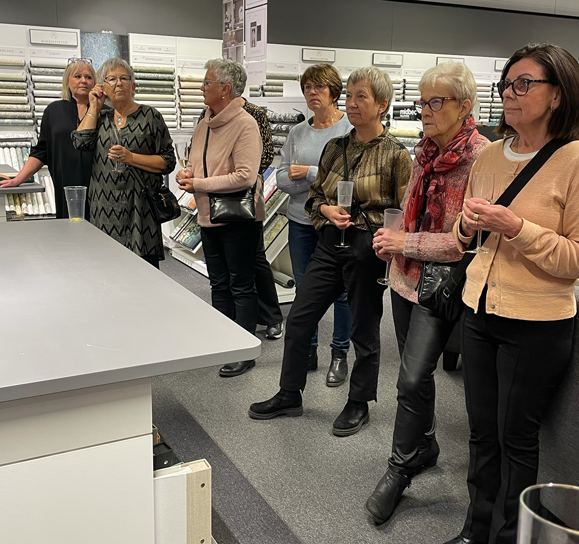 Cirka 80 personer hade anmält sig till kvällen där det bjöds på tips och inspiration av olika slag och shopping så klart. Smörgåstårta och bubbel i glasen efter att deltagarna fått gå runt till fyra stationer med inslag av höstens mode från People, målningstips från Beckers, rengöringstips från Jape och visning av möbler från Swoon och Starrike.