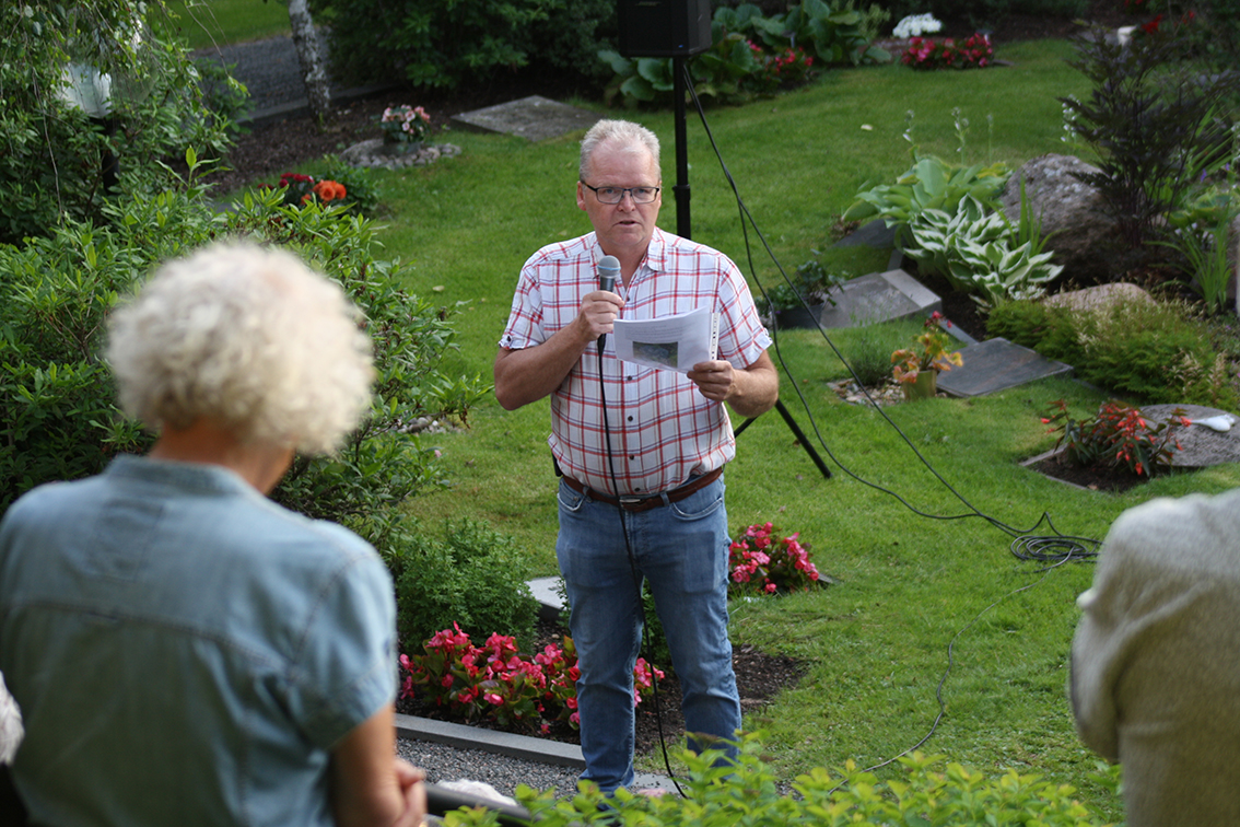 Kvällen inleddes av Lars Andersson, Kyrkogårds- och fastighetschef, som hälsade välkommen och berättade om insamlingar till Act Svenska kyrkan och att det finns möjlighet att bli månadsgivare. Han lämnade ordet vidare till Anders Lust som är arborist och landskapsingenjör. Han berättade om att ytterligare ett träd på kyrkogården i Byarum smittats av almsjuka och hur de kommer att hantera det.