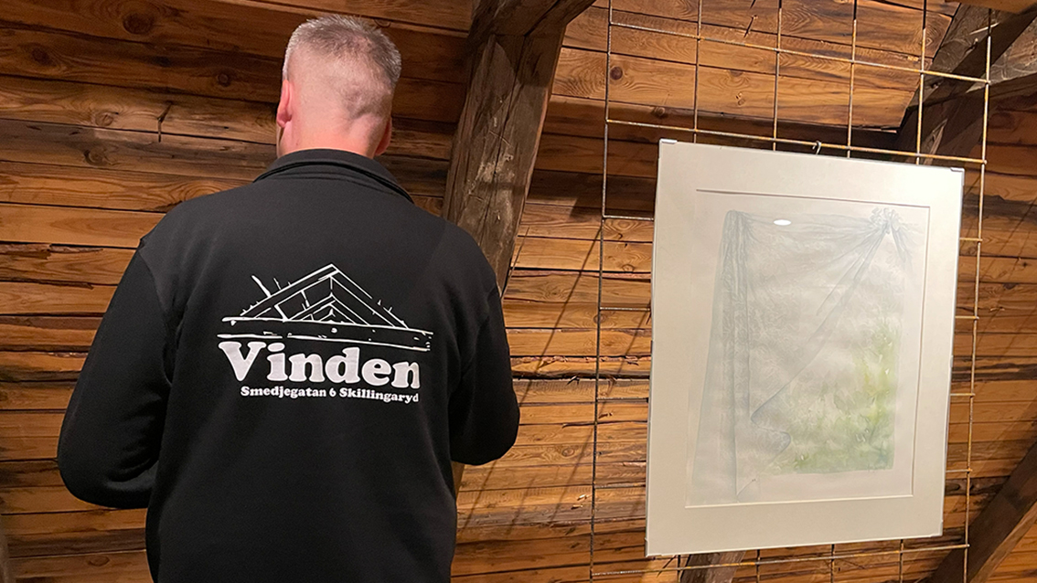Anna kommer i från Jönköping, eller egentligen Huskvarna från början. Hon har ställt ut på Vinden en gång tidigare för några år sedan. – Jag har ju haft en hel del utställningar tidigare. Både här men också i Jönköping. Jag vet inte vilken det är i ordningen. Jag har målat i alla fall en bra bit över hundratalet tavlor, berättar Anna.