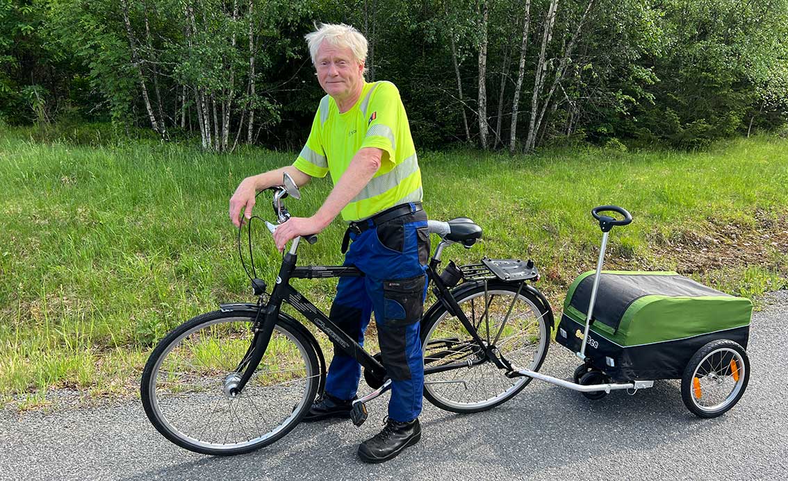 De senaste 22 åren har Jan-Olof fem dagar i veckan – i ur och skur – cyklat till jobbet i Klevshult, en sträcka på ganska exat en mil från hemmet i Skillingaryd. Arbetsplatsen har varit Ture Johanssons Trävaru AB som för inte länge sedan köptes av Södra.
