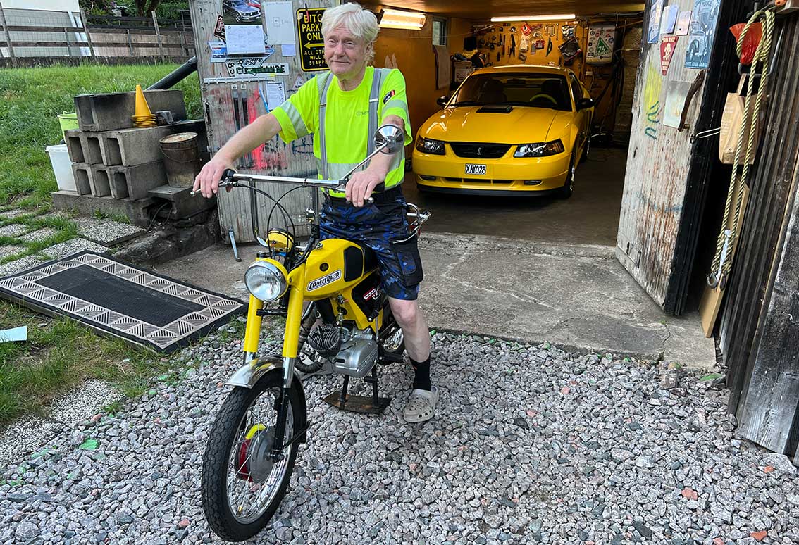 Olle tycker om att jobba med veden och gissar vi rätt så blir det lite extra tid även för hans två gula älsklingar, en moped som han köpt av årsmodell 1974, samma märke och färg som han hade som grabb. Sedan har han sin Mustang av årsmodell 2006, en bil som han vårdar ömt och som bara rullat 4 900 mil. Det blir oftast inte mer än 50 mils körning om året men kanske lite mer nu när livet består av enbart fritid.