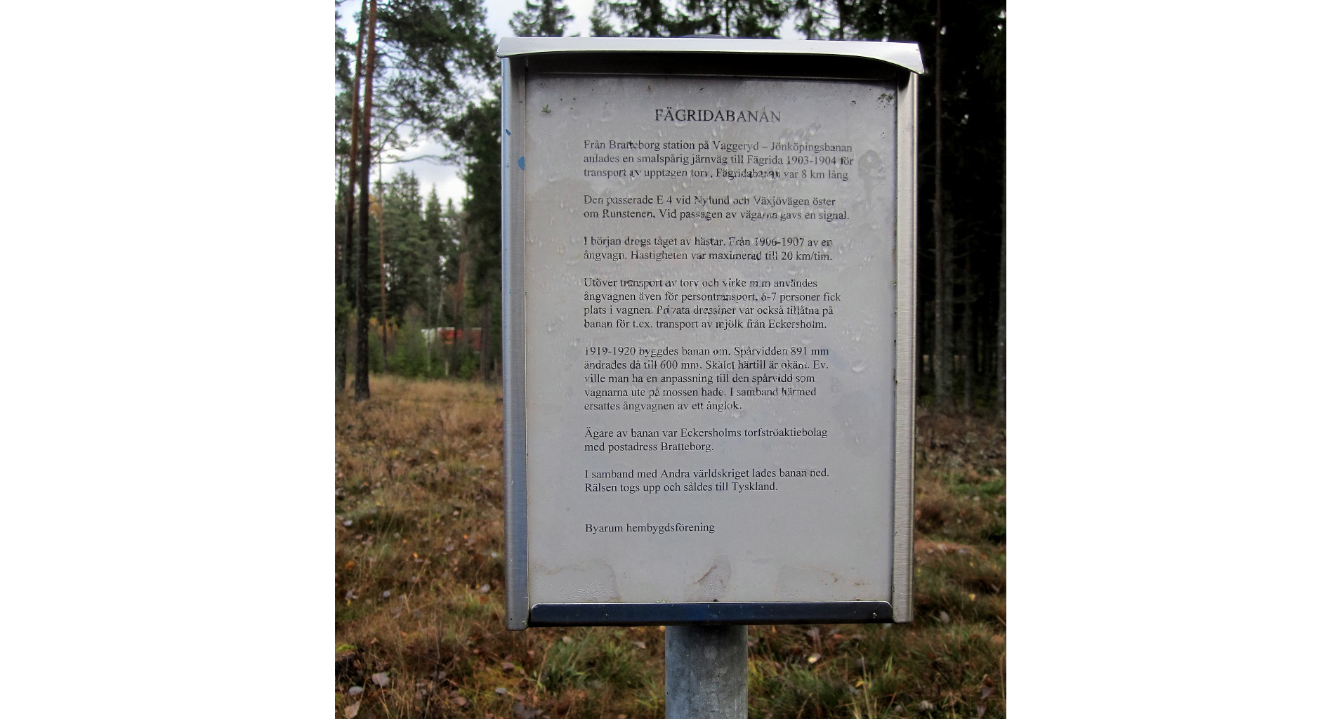 Byarums hembygdsförening berättar följande om Fägridabanan: