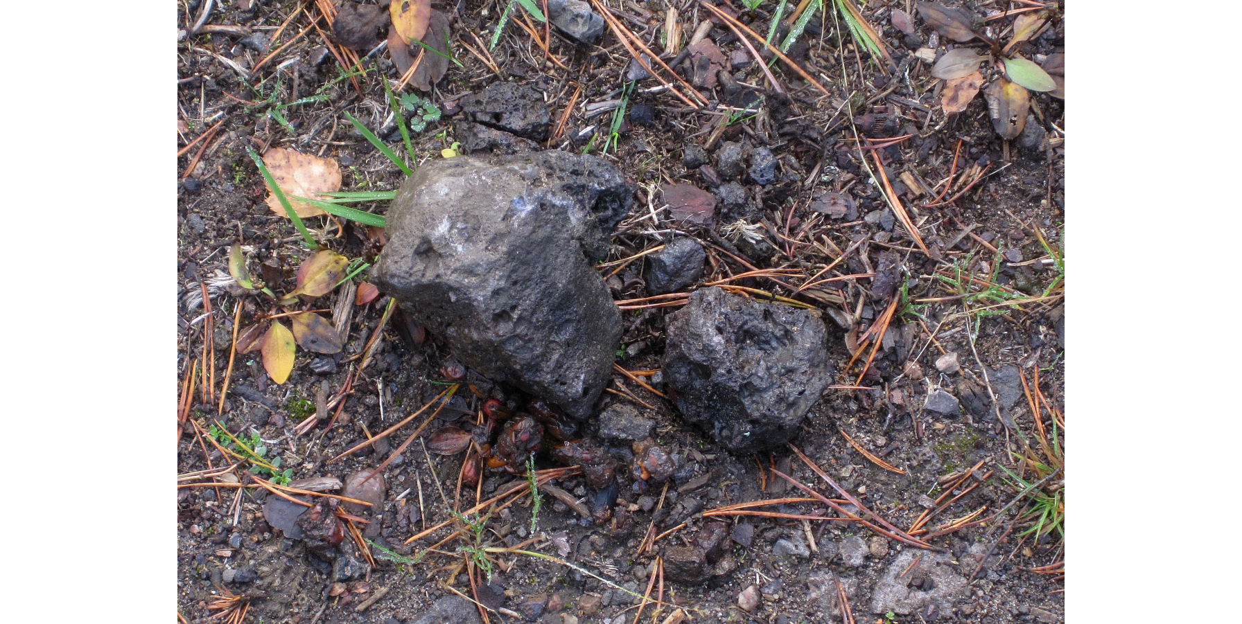 Det är inte svårt att hitta slagg vid Eckersholm, slagg är en produkt som uppstår vid olika typer av metallurgiska reaktioner och som huvudsakligen består av oxider, ofta silikater som är en kemisk förening av kisel och syre.