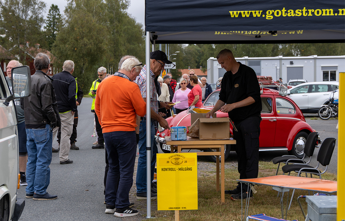 Totalt så startade 125 fordon och det gick åt 232 bullar på fika kontrollen på Frälsningsarméns ungdomsgård i Fåglabäck där serveringsgruppen från Frälsningsarmén serverade kaffe, kaka och bulle.