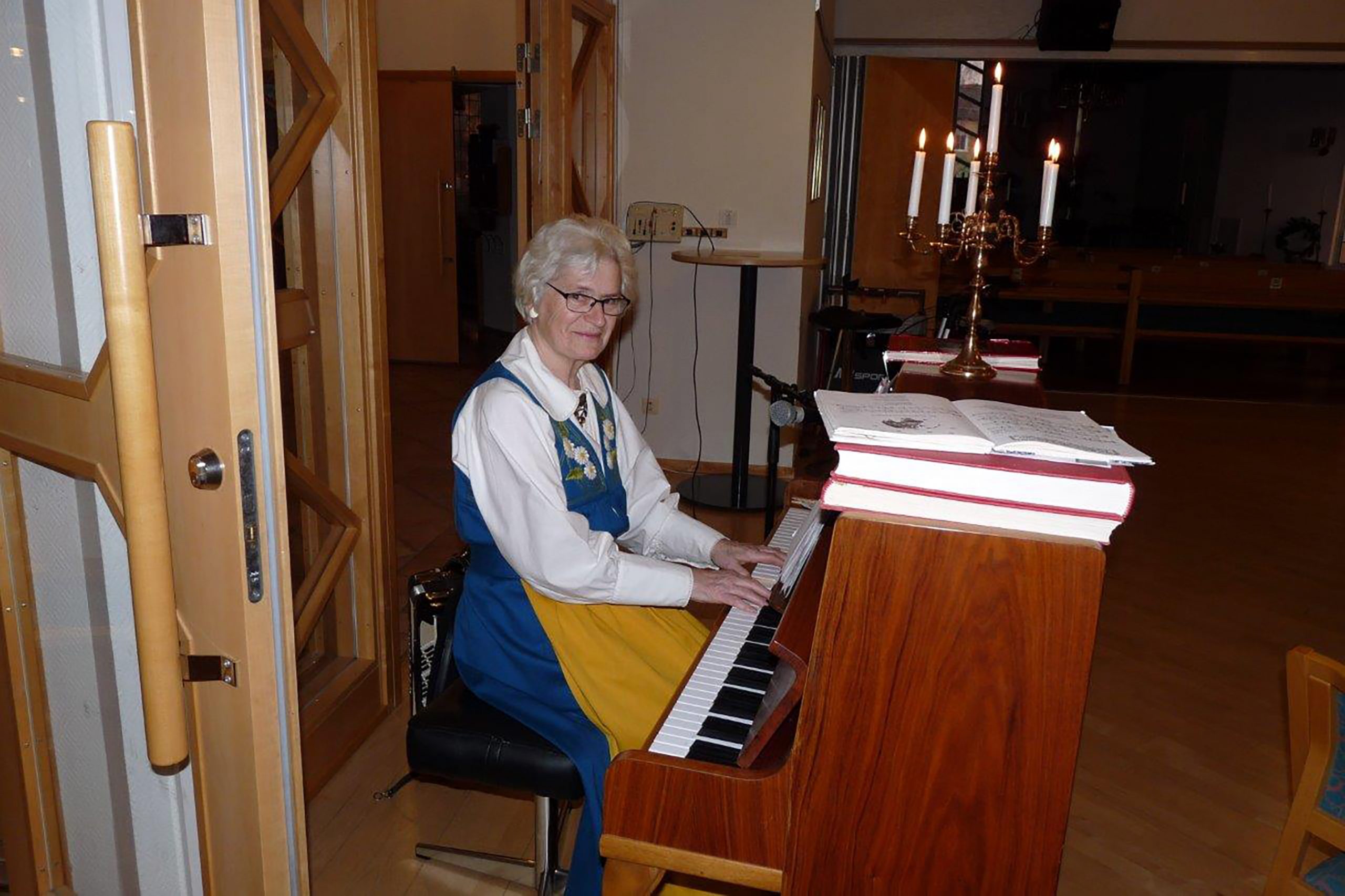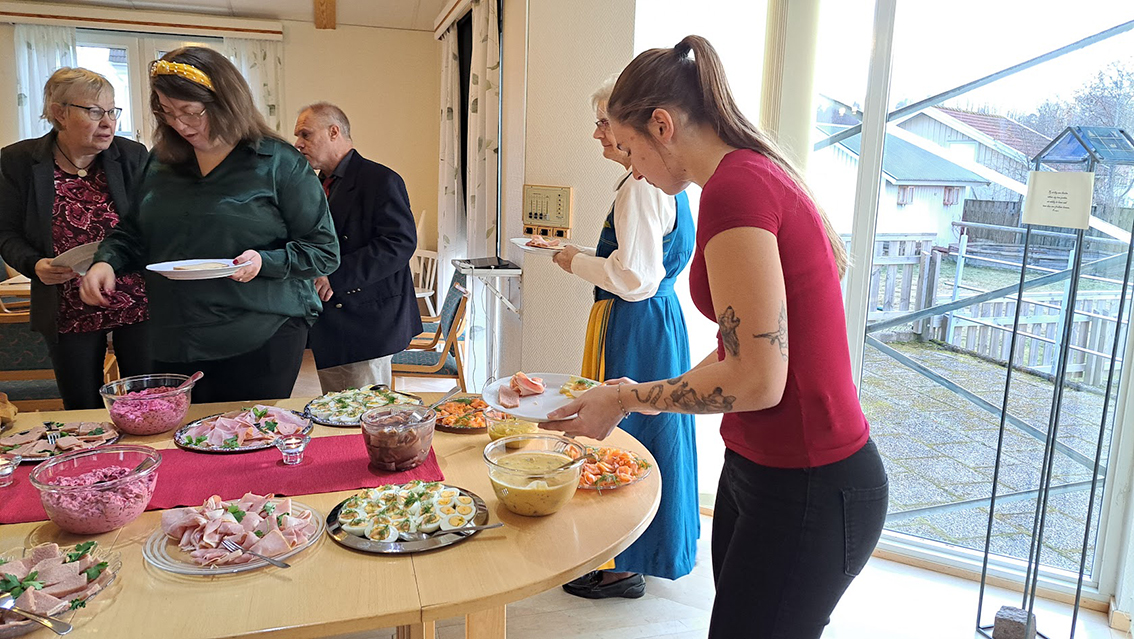 Ordförande Lena Haraldsson hälsade alla hjärtligt välkomna till julfesten och bjöd alla till bords att äta av den framdukade julmaten. Alla lät sig väl smaka och åt med god aptit av det goda som fanns. Snart var det dags för Ing-Britt att spela och sjunga igen, då kom även dragspelet fram. Svaren på tipspromenaden redovisades och det drogs tre vinnare som brukligt är.