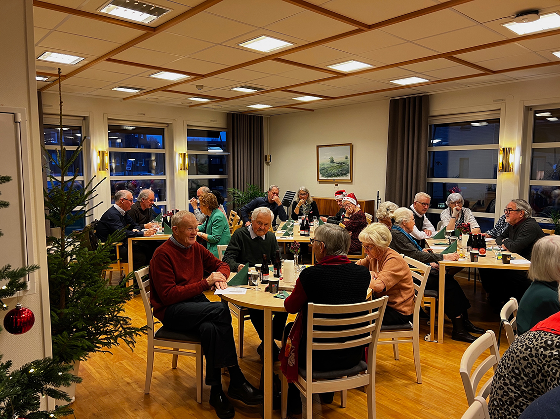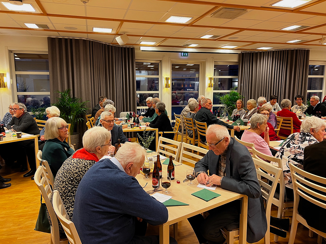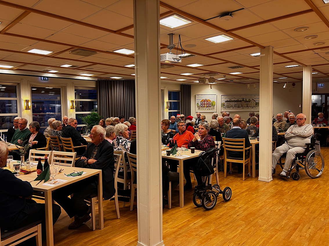 Det var över nittio förväntansfulla seniorer från SPF i Vaggeryd som samlades i restaurang Linnéa för att njuta av ett läckert julbord och underhållas med musikquiz och julanknutet bingo.