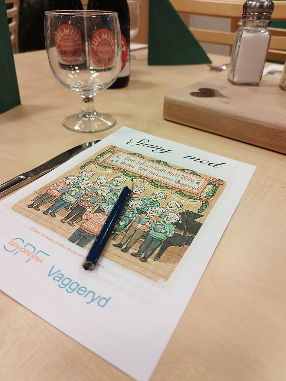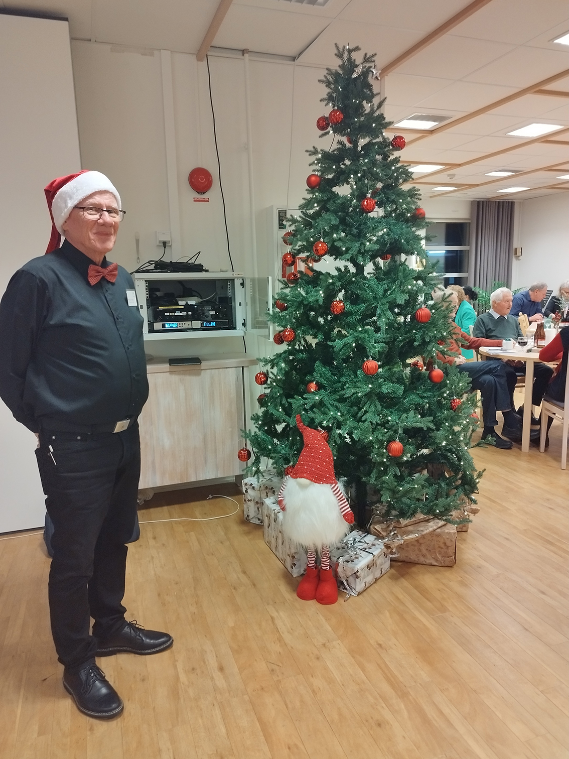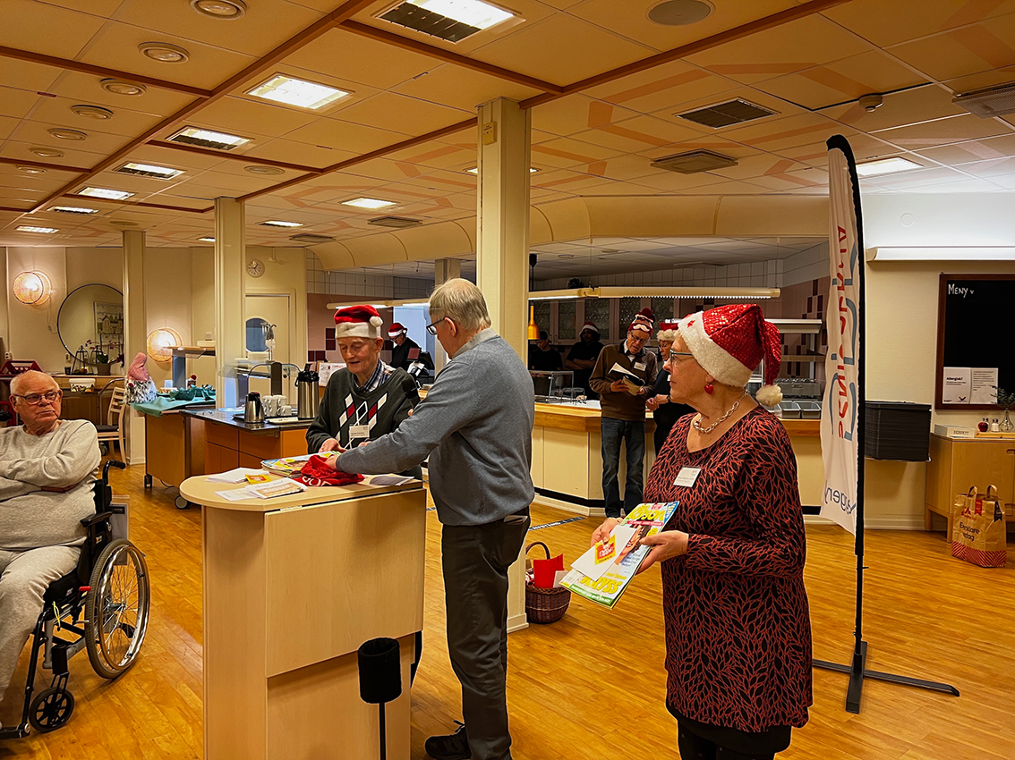 Det var över nittio förväntansfulla seniorer från SPF i Vaggeryd som samlades i restaurang Linnéa för att njuta av ett läckert julbord och underhållas med musikquiz och julanknutet bingo.