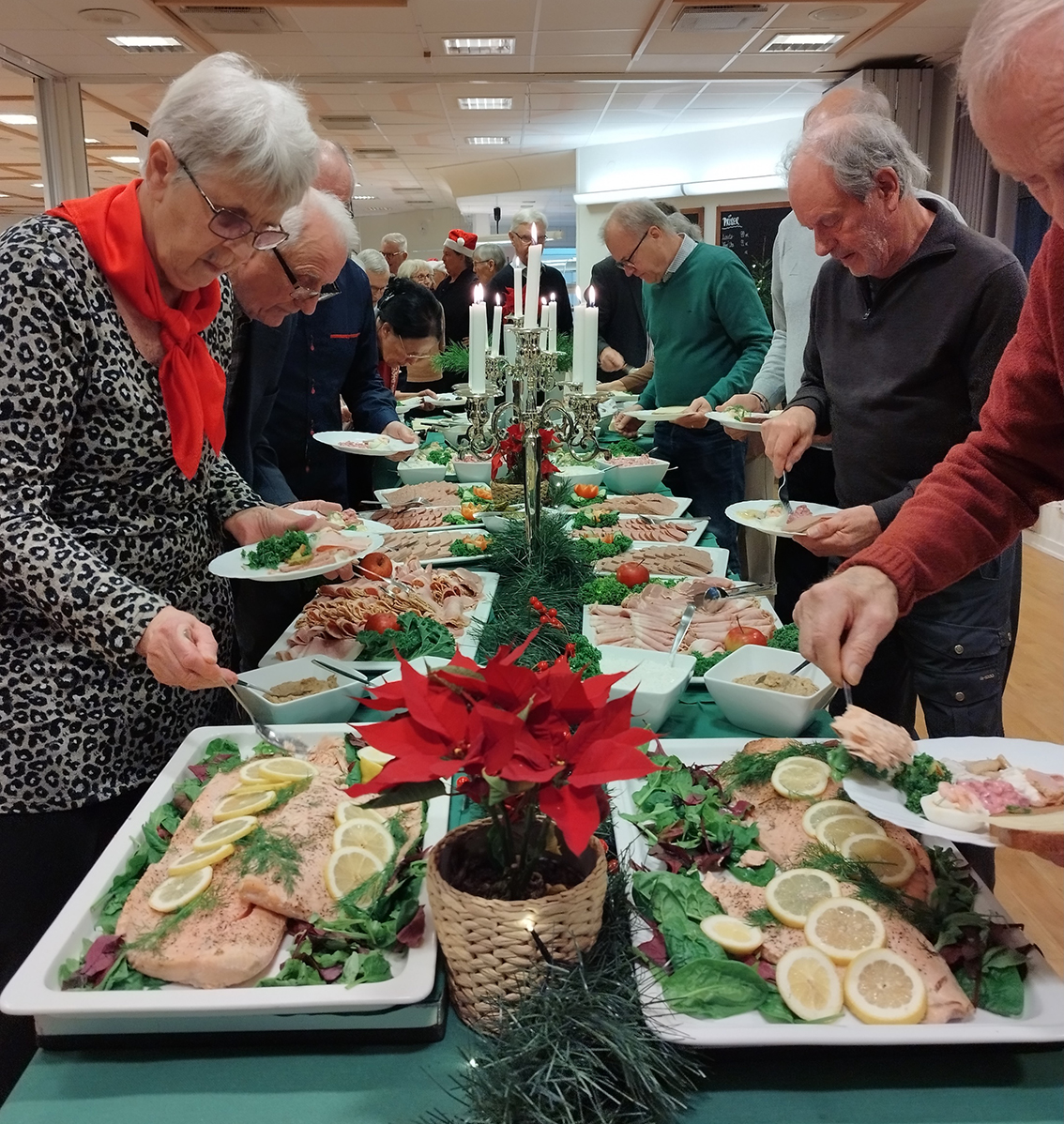 Jörgen Bergström och Mats-Eric Fransson hade satt samman ett klurigt musikquiz och det skapade intensiv aktivitet bland borden. Det var frågor med aktualitet och även kopplat till julen. Det traditionella julbordet blev mycket uppskattat och Linnéas personal fick välförtjänt mycket beröm för arbetet med maten och det var trevliga tomtenissar som tillhandahöll julens varma läckerheter.