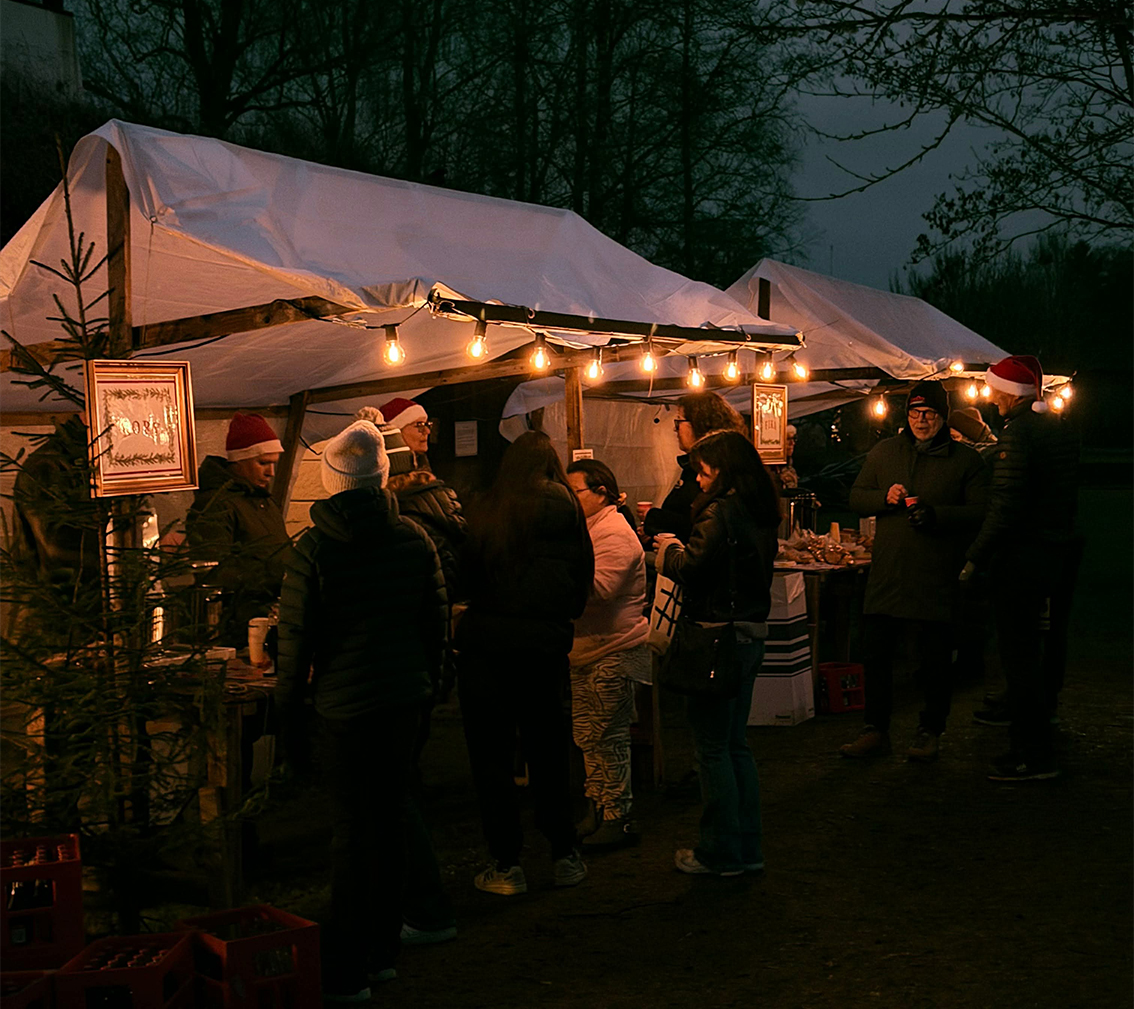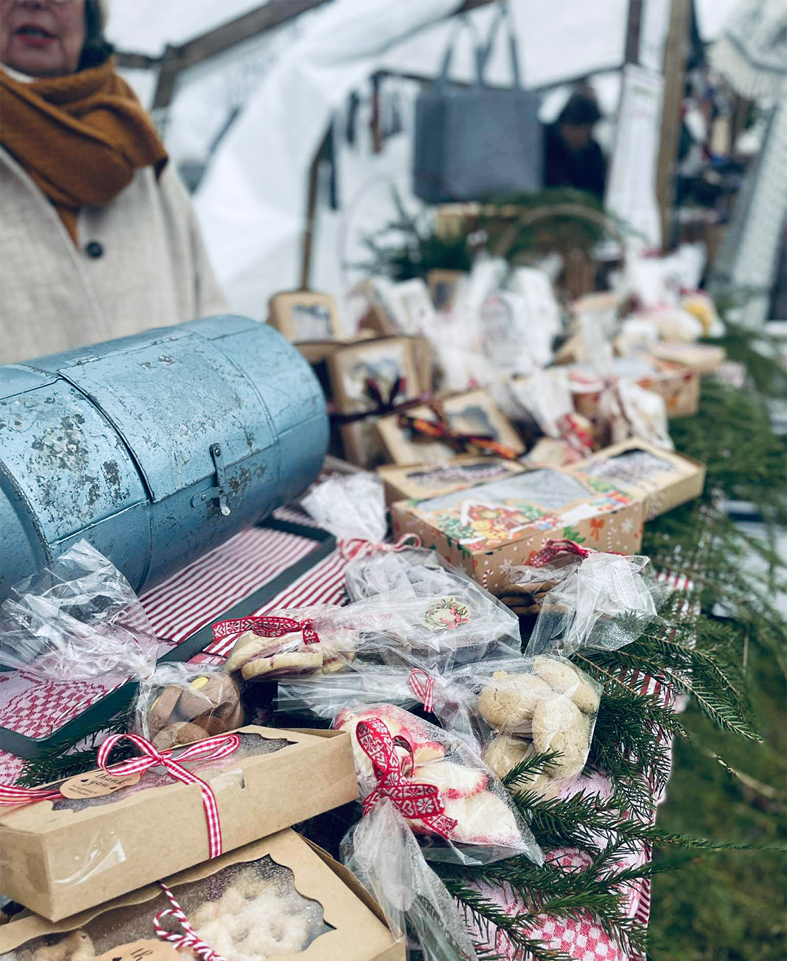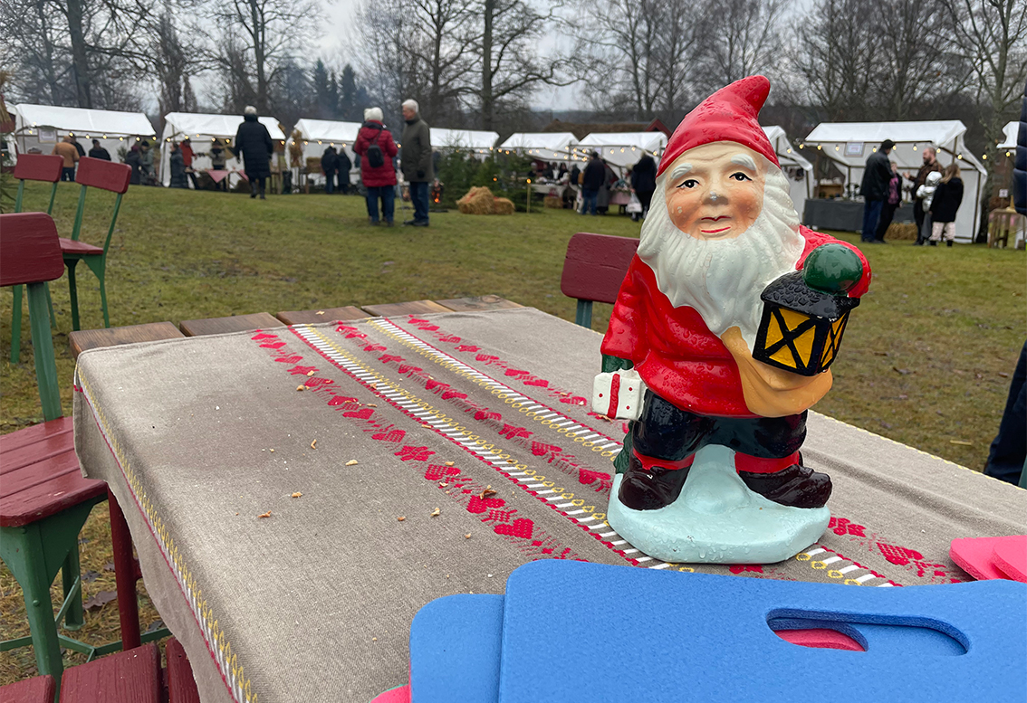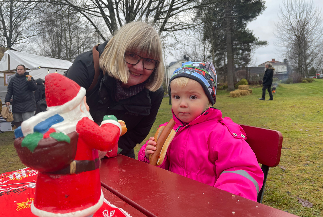 Regnvåt gräsmatta och regntunga skyar var det knappt någon som tänkte på, i alla fall inte efter klockan 11 då julmarknaden började.