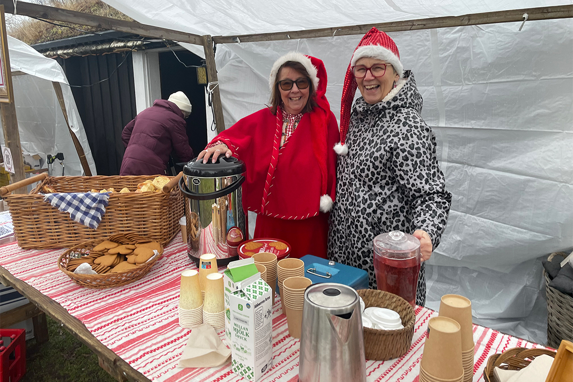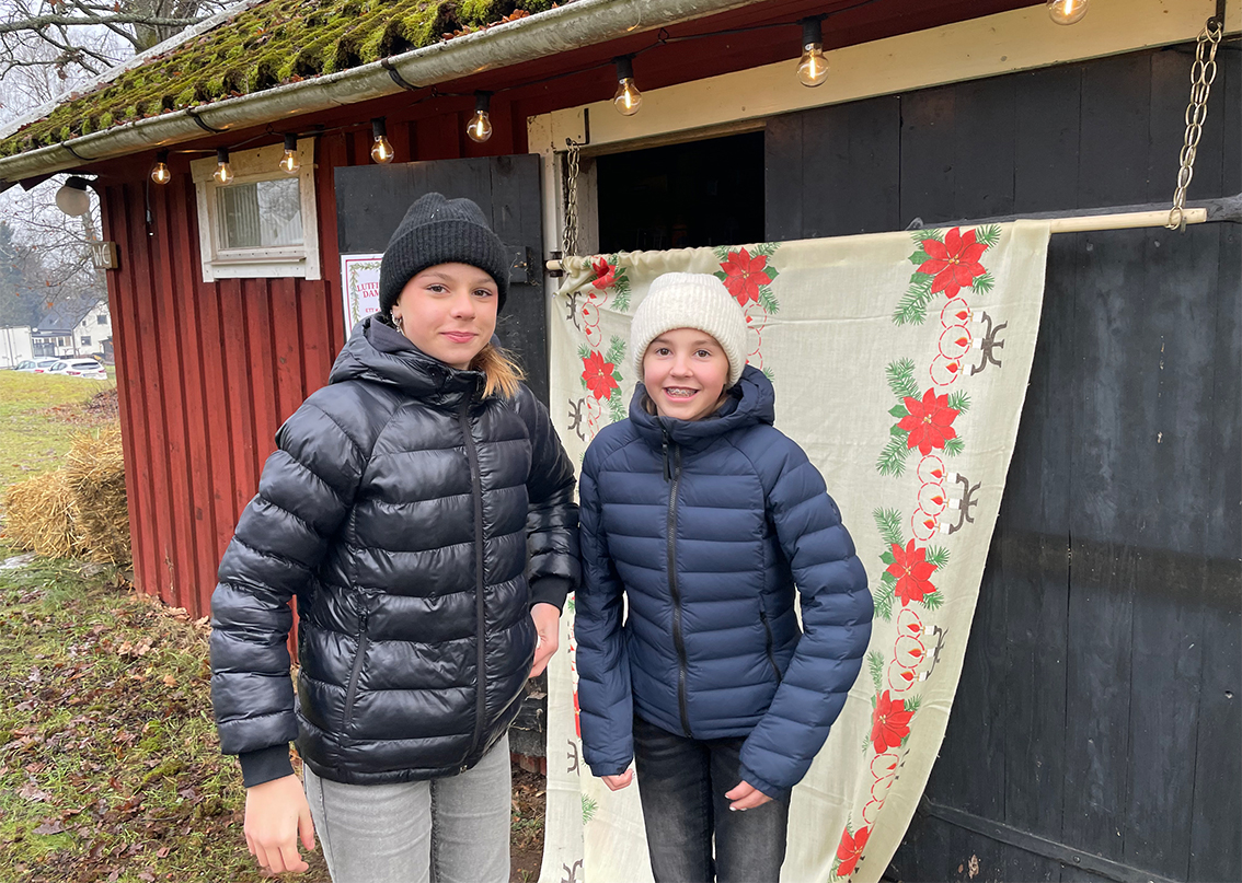 Kristin Sveningsson och Lotta Storck serverar kanelbullar, saffransbullar, pepparkakor, kaffe, saft och glögg.