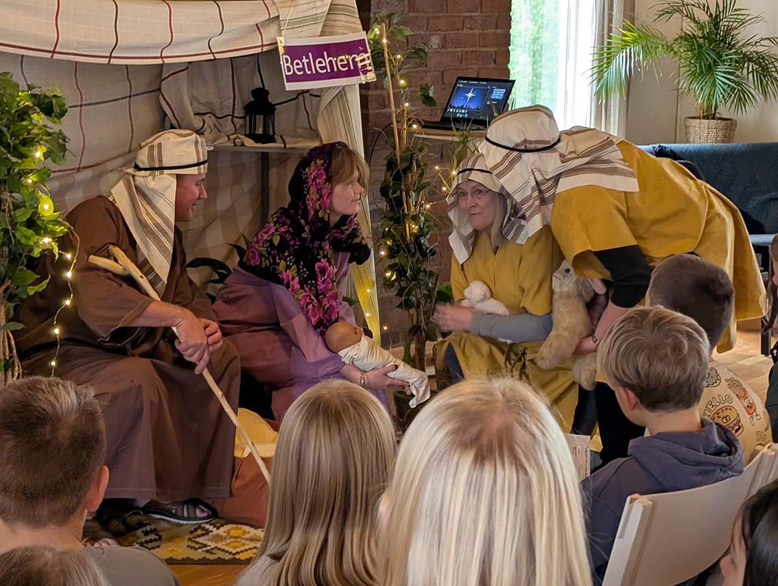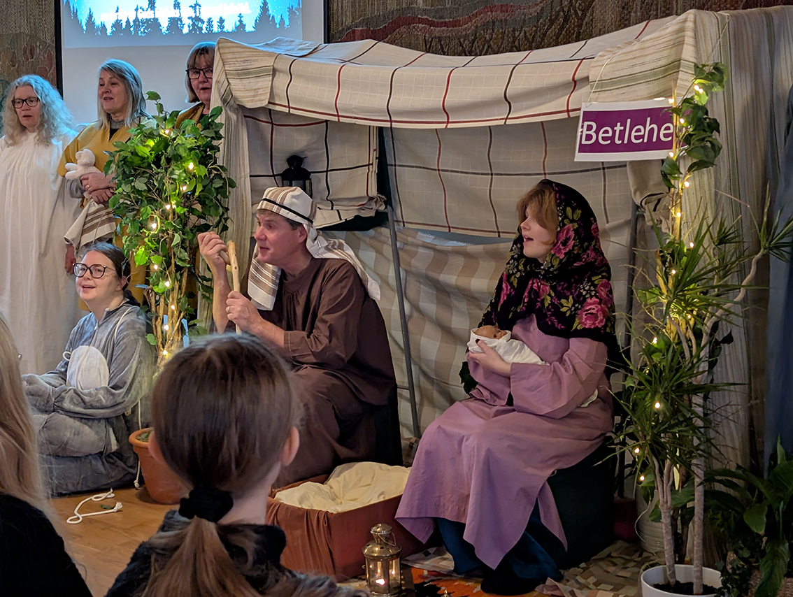 En berättelsen byggdes upp för julvandring. Det blev en tidsresa med olika stationer och olika personer från Bibeln.